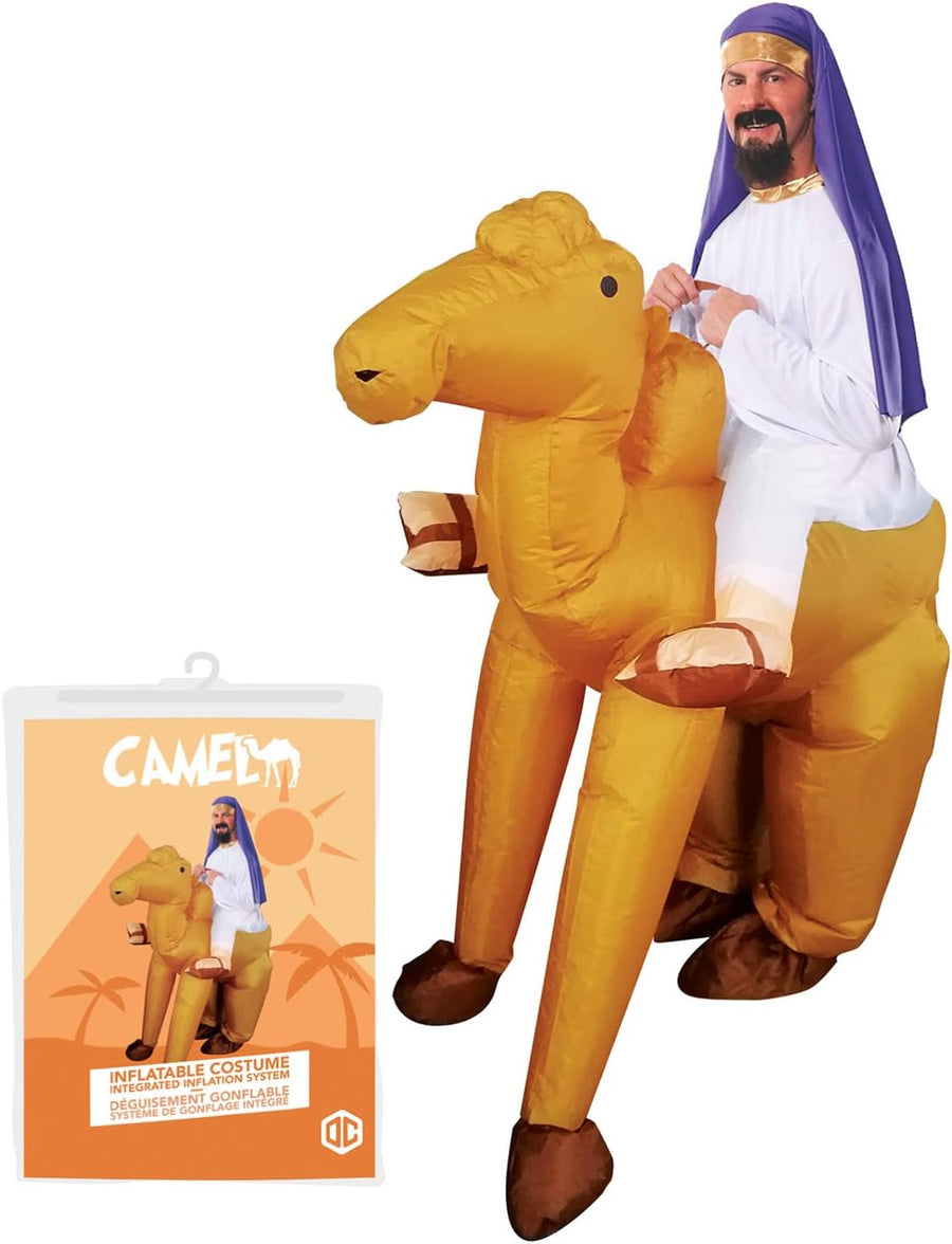 - 🐫 🎈 AUFBLASBAR: Aussergewöhnliches aufblasbares Kamel-Kostüm. Einfach aufzublasen dank seiner 2 integrierten Ventilatoren, die mit Batterien funktionieren (Typ AA nicht im Lieferumfang enthalten).
