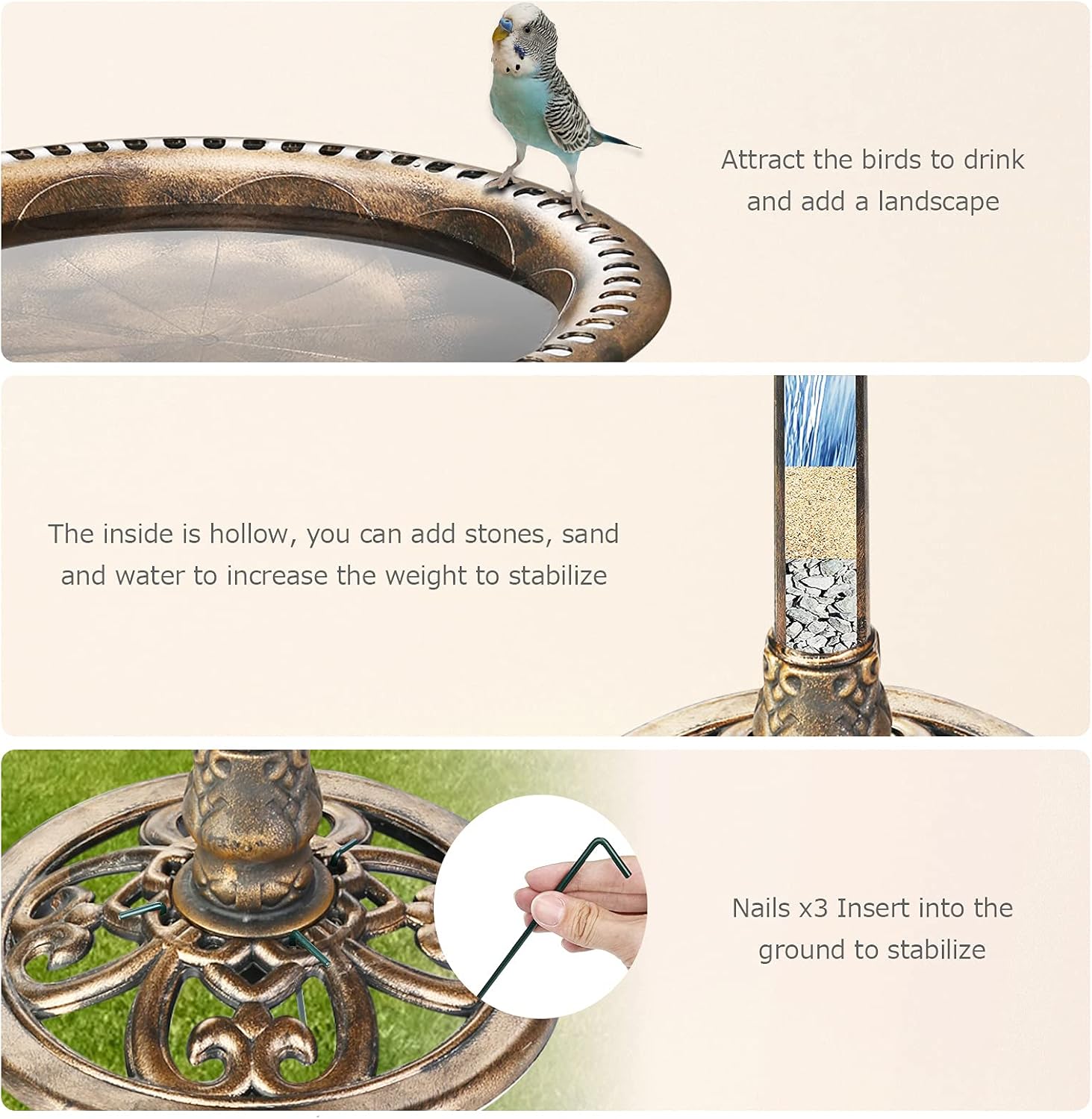 • 【Leichtes Design】 Das Vogelbad ist sehr leicht, sodass Sie dieses Bad mühelos an den perfekten Ort bringen können; Für zusätzliche Stabilität können Sie das Podest mit Kies oder Steinen befüllen
