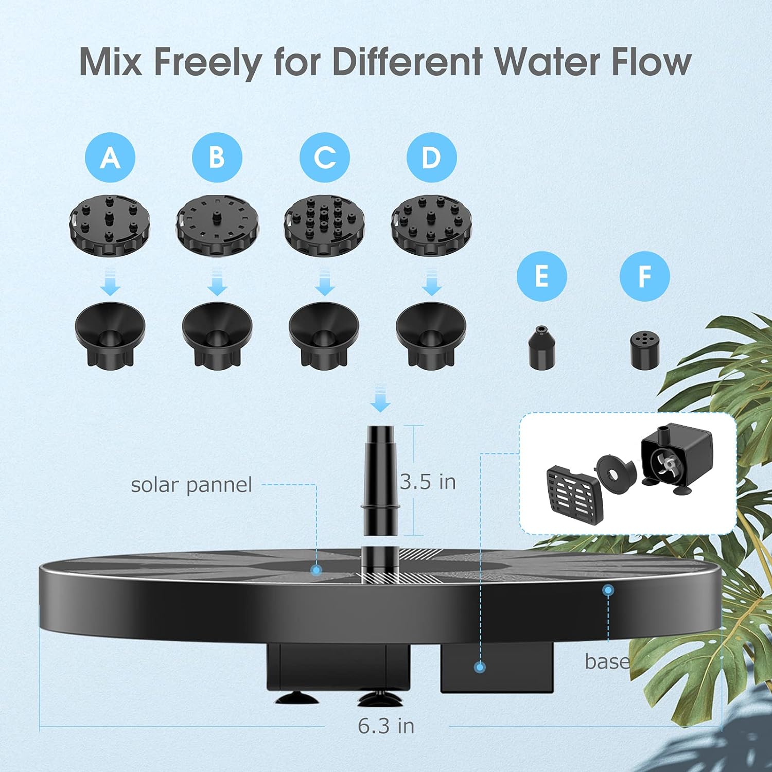 - 【Mehrere Wassermuster】 Mehrere Fontänenköpfe für verschiedene Wassermuster; Einfache Montage und Austausch der Köpfe; Bitte achten Sie besonders an sonnigen Tagen auf ausreichende Wasserversorgung in kleineren Wasserspielen water
