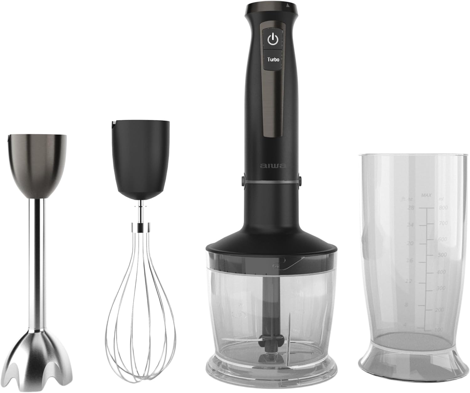 - Zubehör: Enthält einen 800-ml-Messbecher mit Deckel zum präzisen Portionieren von Zutaten.