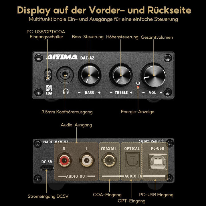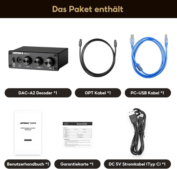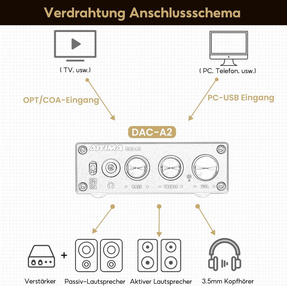 - Samping Rate: USB-24bit/96khz, optisch / koaxial-24bit / 192kHz, digitaler USB-Audioverstärker, USB-Digital-Analog-Adapterdecoder und Kopfhörerverstärker-DAC-Decoder