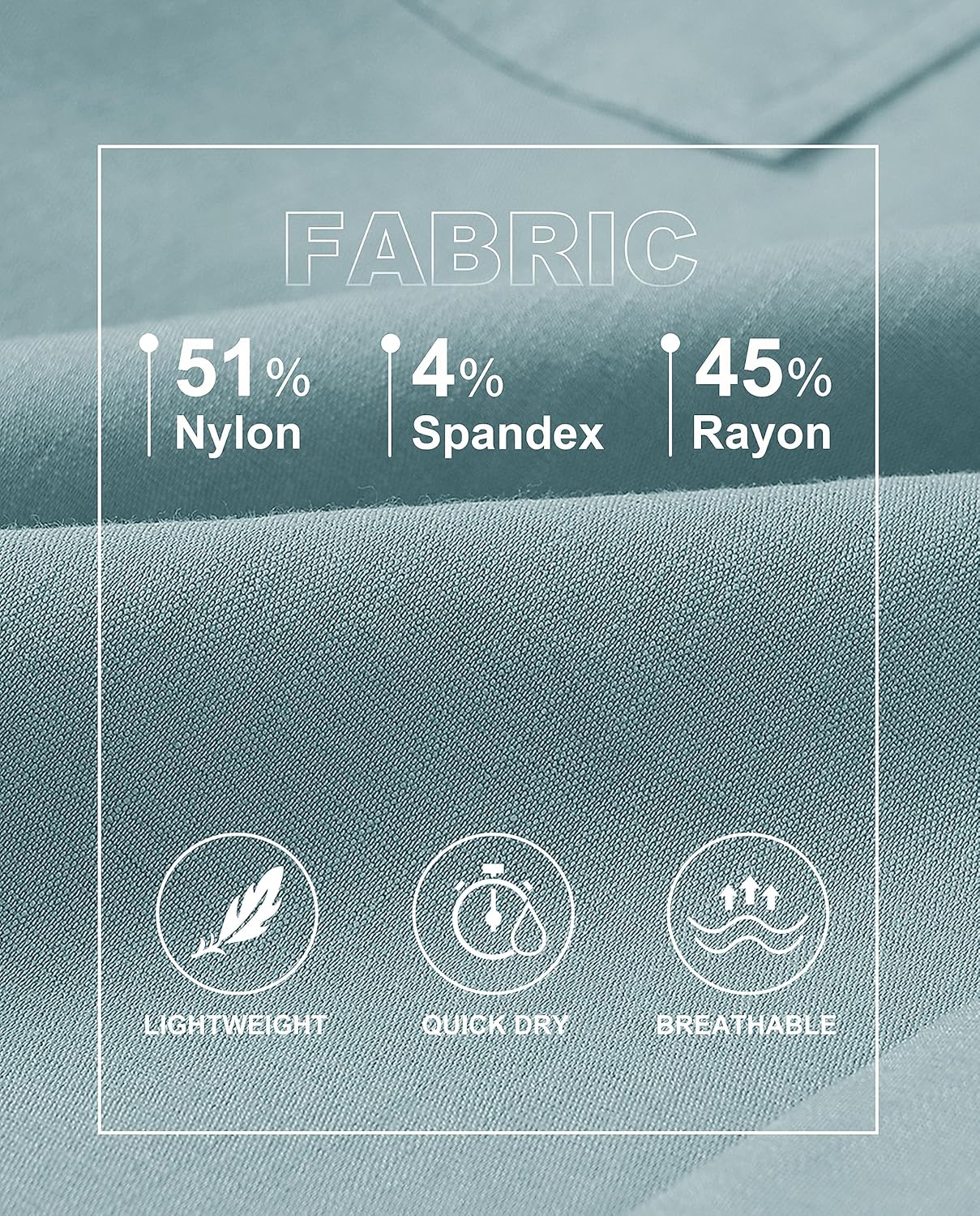 - Material - 45% Viskose, 51% Nylon, 4% Elasthan. Leichtes, Atmungsaktives Material transportiert Feuchtigkeit von der Haut weg und hält den ganzen Tag trocken.