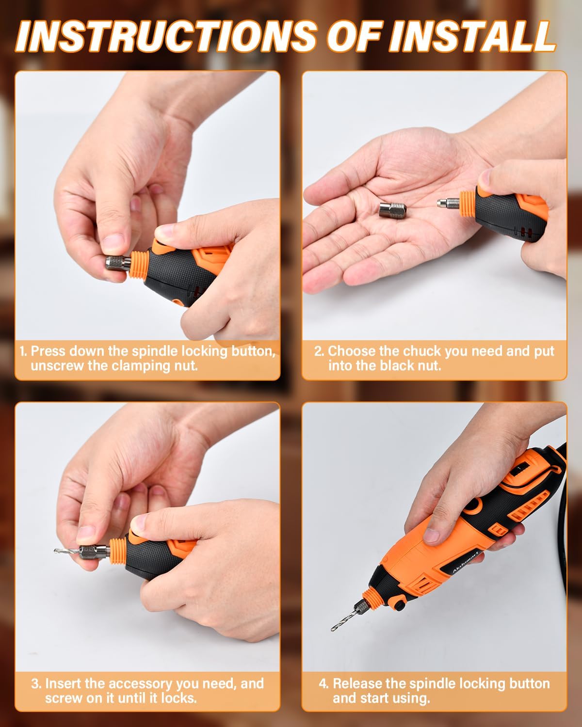 - 【Universeller Klemmkopf】Das Akdomart multi tool wird mit einer 3-Backen-Universal-Spannzange geliefert, die es Ihnen ermöglicht, Zubehörteile schnell und einfach auf dem Drehwerkzeug frei zu wechseln. Es akzeptiert Zubehörteile von 1/64" bis 1/8"