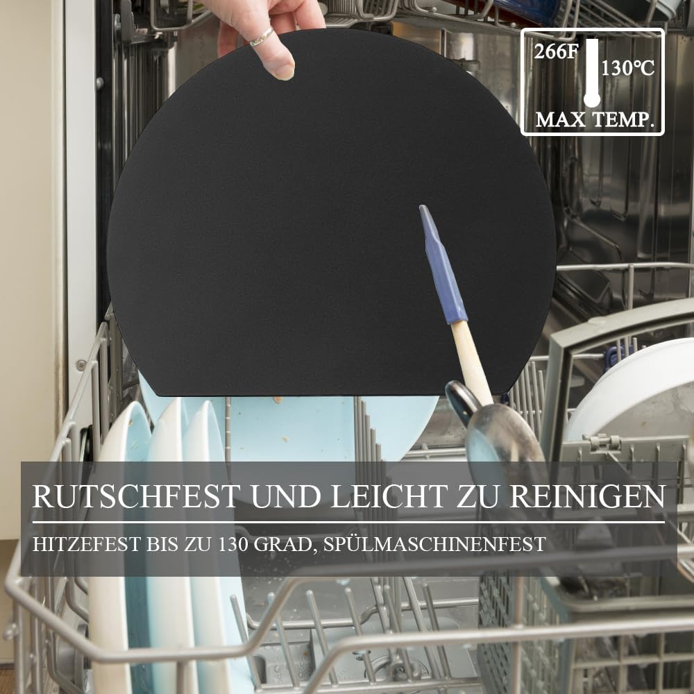 - Rutschfest und leicht zu reinigen: Mit einer Hitzebeständigkeit von bis zu 130 Grad können sie direkt in die Spülmaschine gestellt werden, was Zeit und Mühe spart.Dieses Schneidebrett bleibt fest auf Ihrer Arbeitsplatte stehen, selbst bei kräftigem