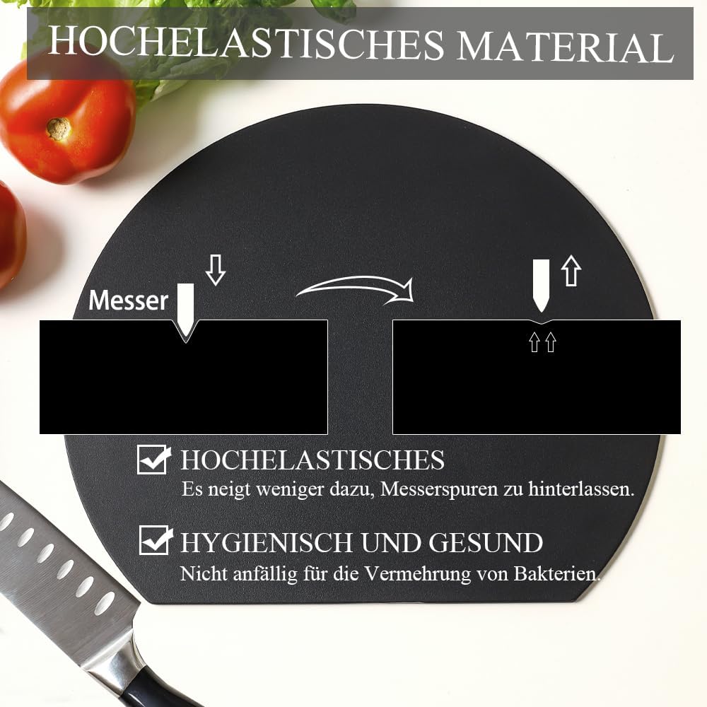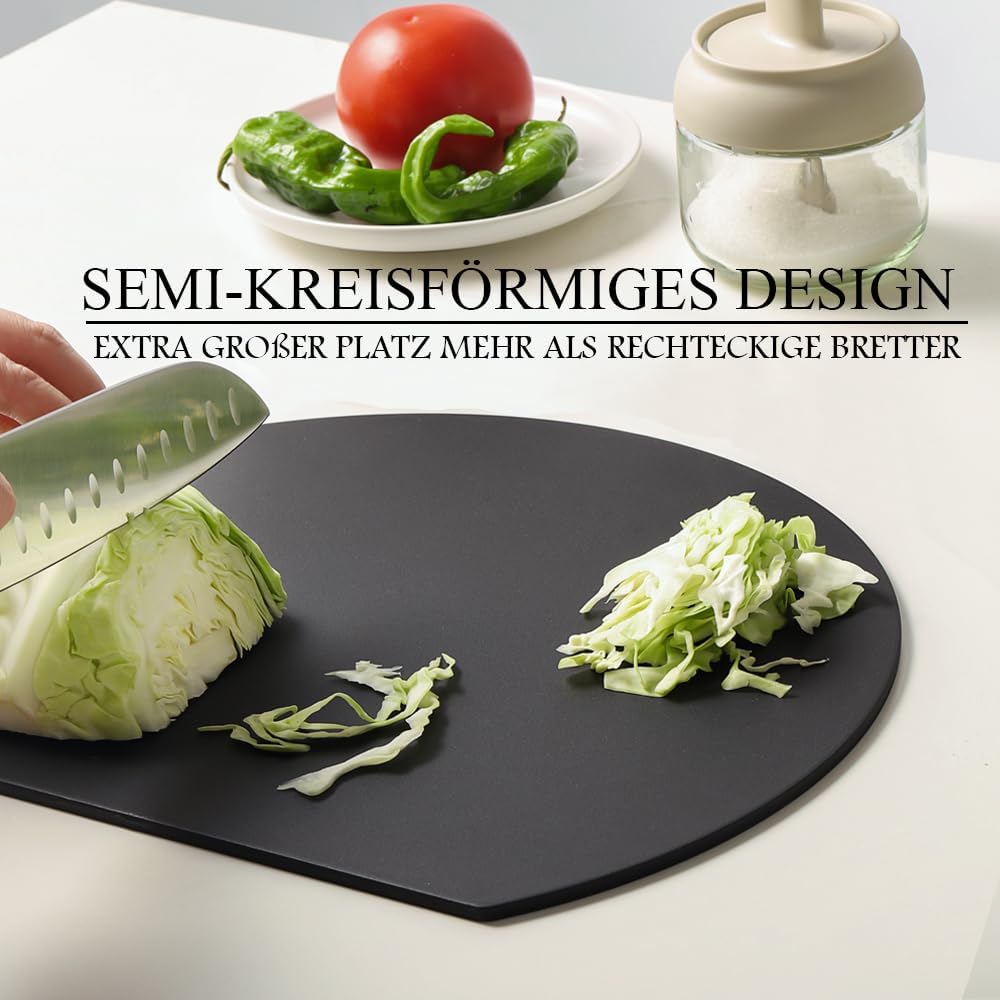 - Halbkreisförmiges Design & Extra grosse Arbeitsfläche: Im Vergleich zu rechteckigen Brettern bietet das halbkreisförmige Design eine grössere Schneidefläche, ohne sich um Verschüttungen und Unordnung auf der Arbeitsplatte sorgen zu müssen. Das
