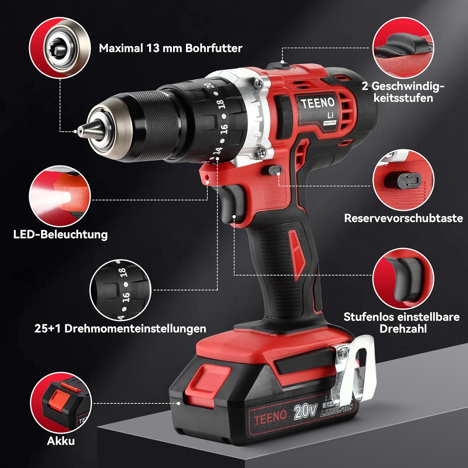 - [20+3 Drehmomentstufen und 45 Nm] Drei-in-eine-Funktion: Bohrmaschine, Bohrschrauber und Schlagbohrschrauber; 20 Drehmomenteinstellungen, optimale Kontrolle bei Bohr- und Spannvorgängen. Das maximale Drehmoment der Schraube beträgt 45 N.m, ideal für