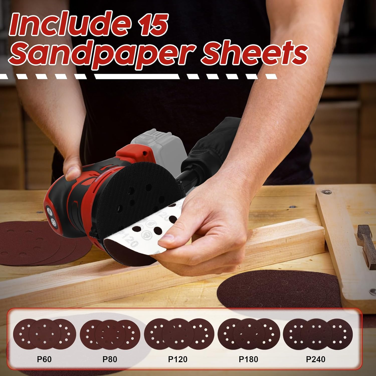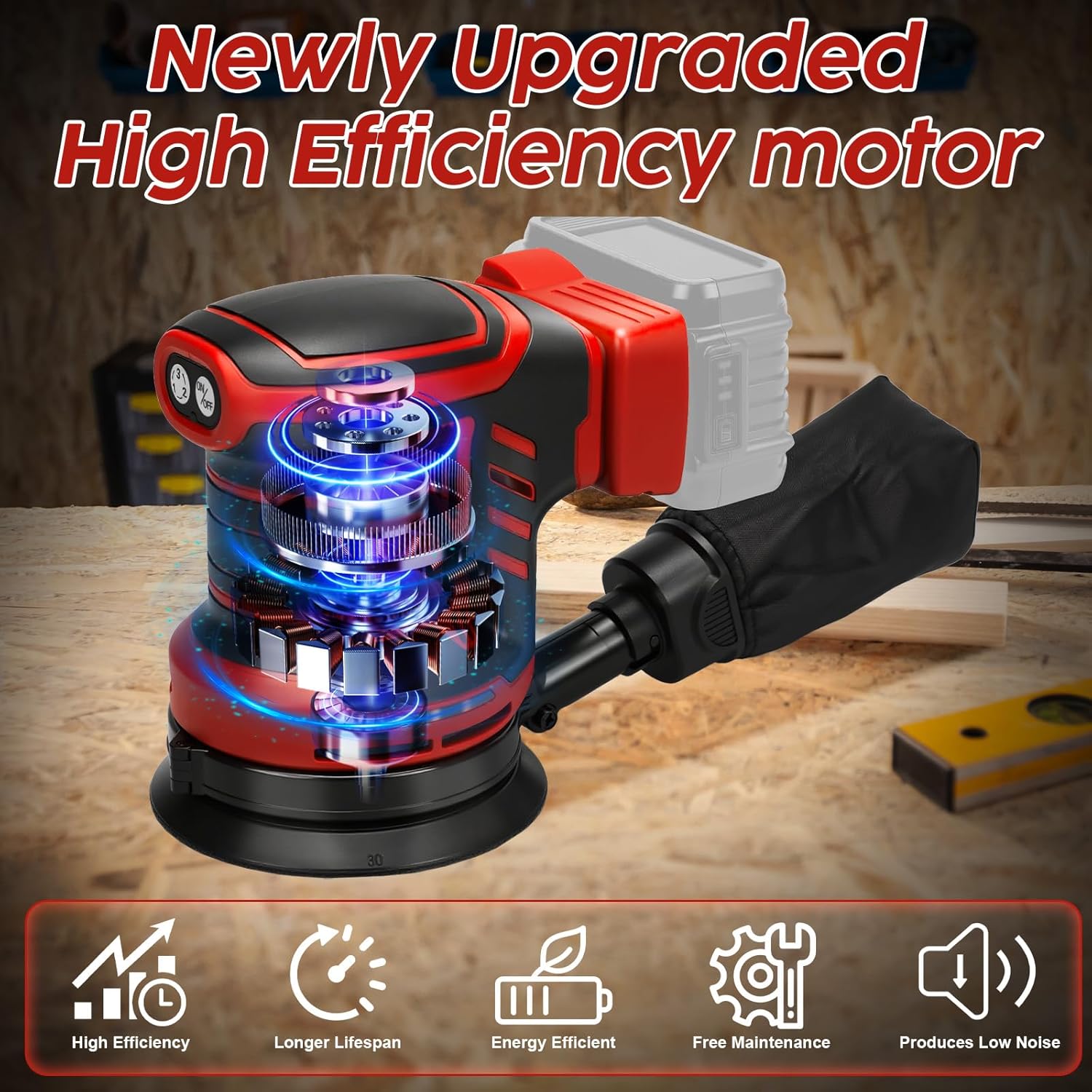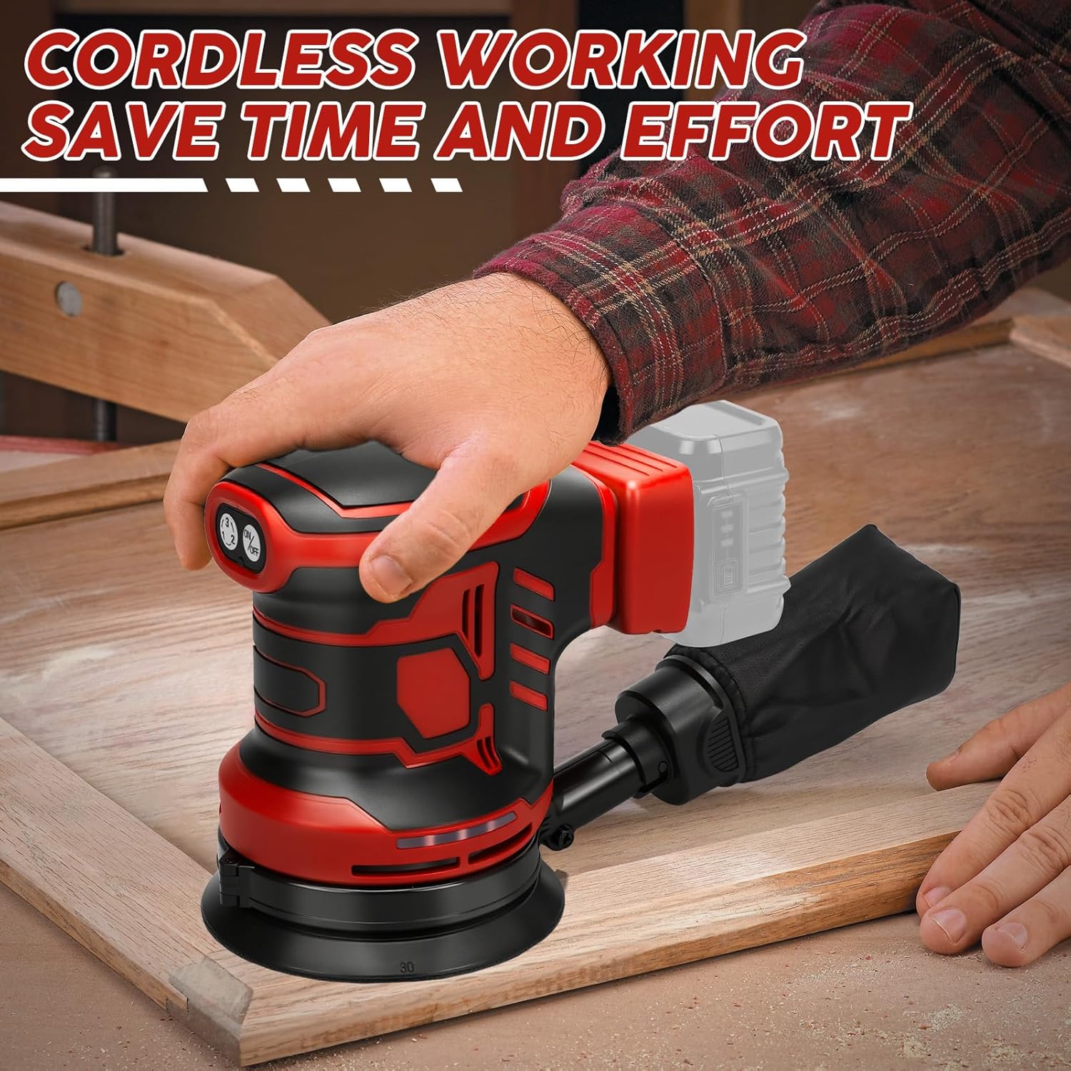 - Effiziente Schleifleistung: Der Akku-Exzenterschleifer mit seiner schnell rotierenden Schleifscheibe kann schnell Fehler und Unebenheiten auf der Oberfläche von Materialien entfernen, effiziente Schleifergebnisse erzielen und die Oberflächenqualität