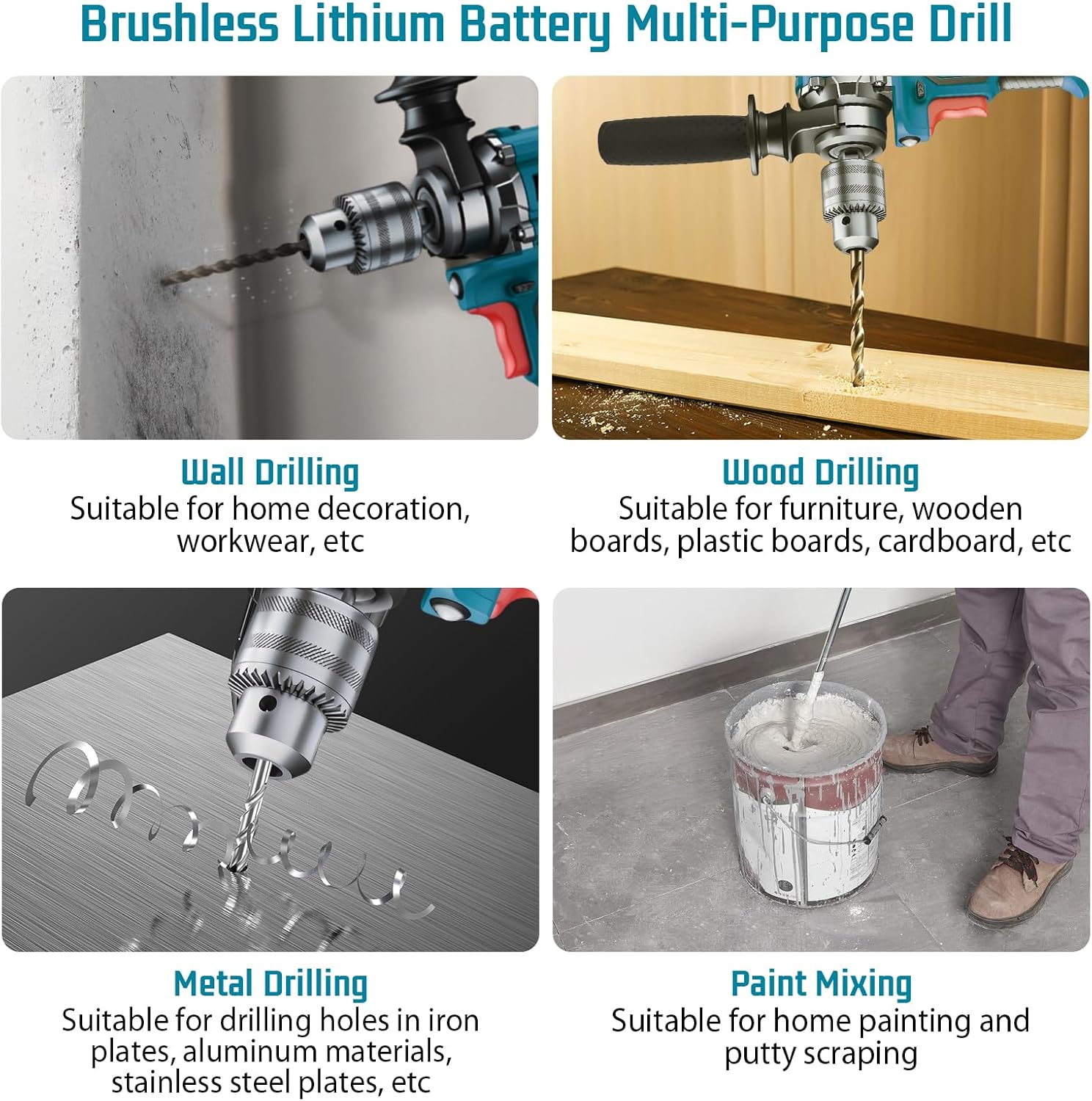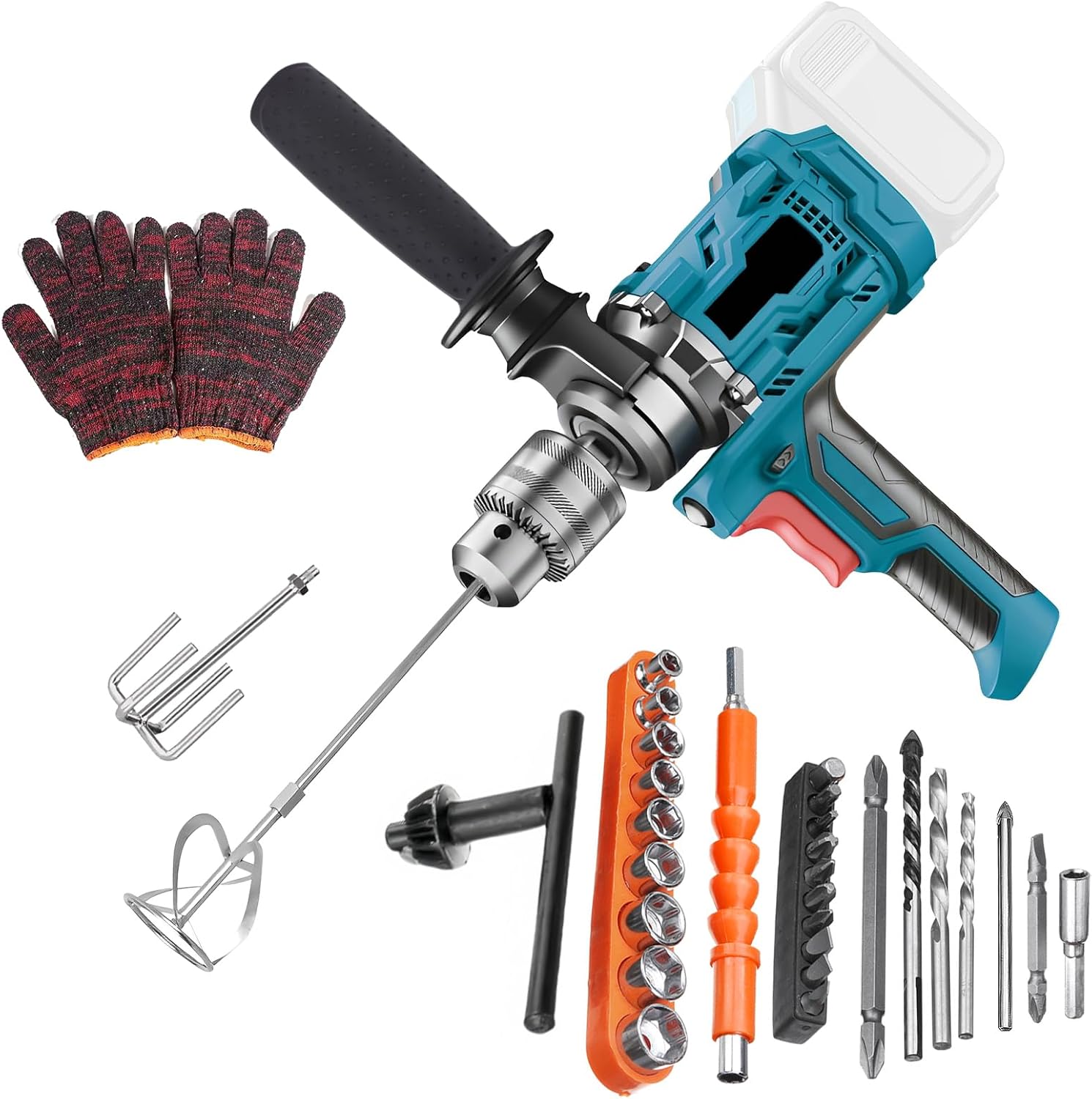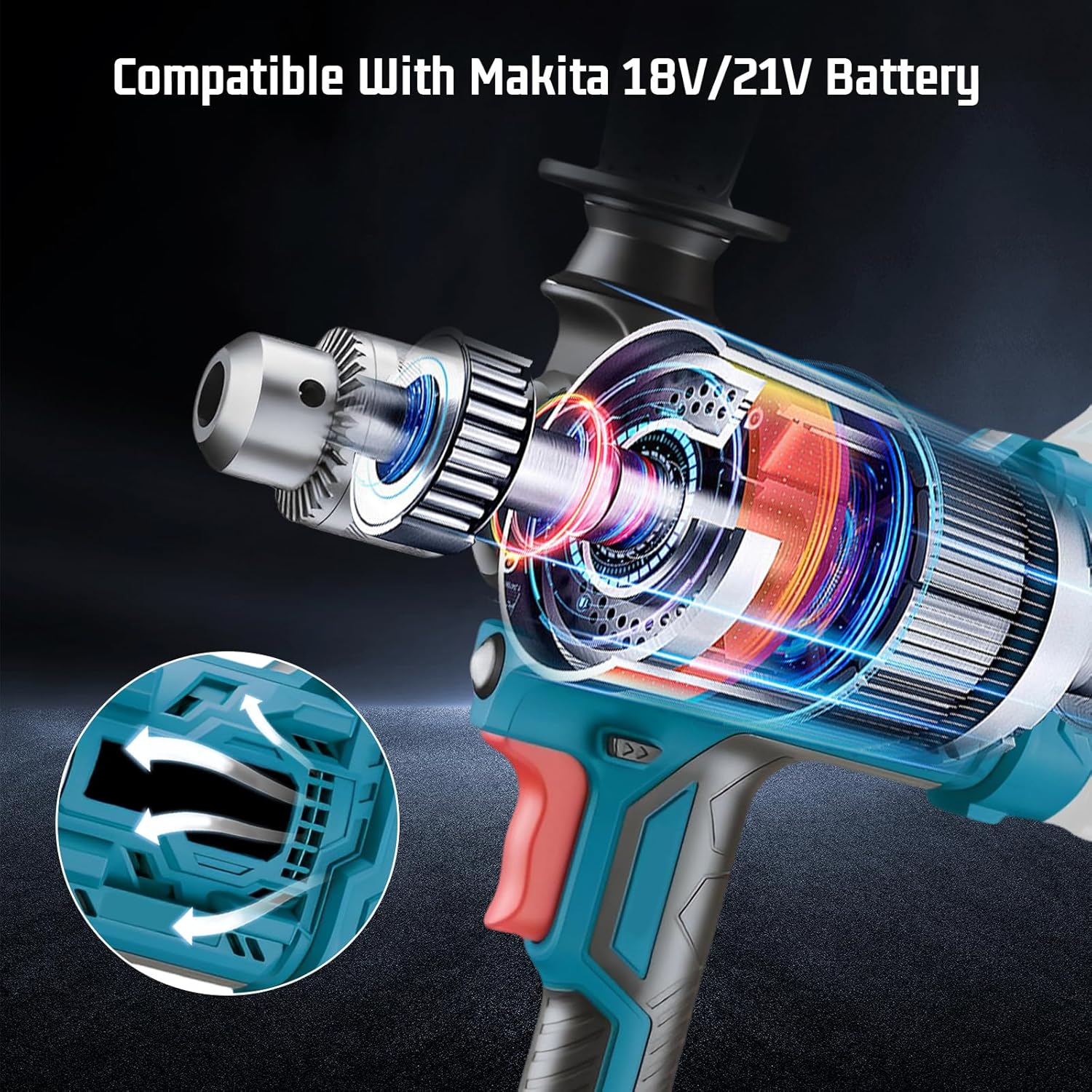 - Bürstenloser Motor Hochleistungsmixer: Akku-Zementmischer Kompatibel mit 18V/21V Lithium-Batterie, Bürstenloser Motor aus Kupfer, Leistungsstarker 1100W-mischmaschine beton mit effizientem Abgassystem. Vielseitige Bohrmaschine mit einstellbarem