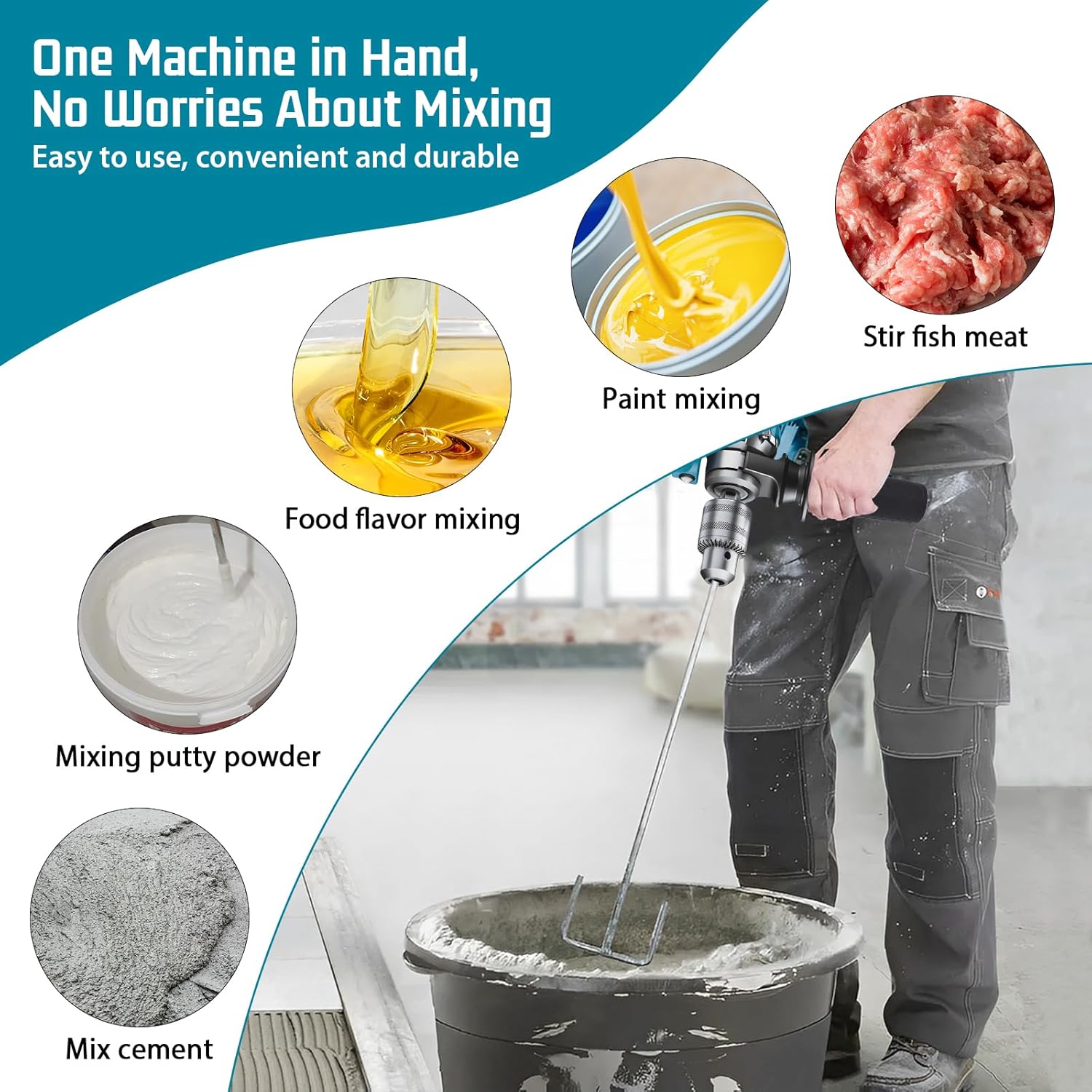 - VIELSEITIGE ANWENDUNG – Perfekt geeignet für das Mischen von Zement, Beton, Fugenmörtel, Farbe, Gips, Kitt und mehr. Zusätzlich kann der Elektromischer als Mehrzweck-Bohrmaschine für Wand-, Holz- und Metallbohrungen verwendet werden – für