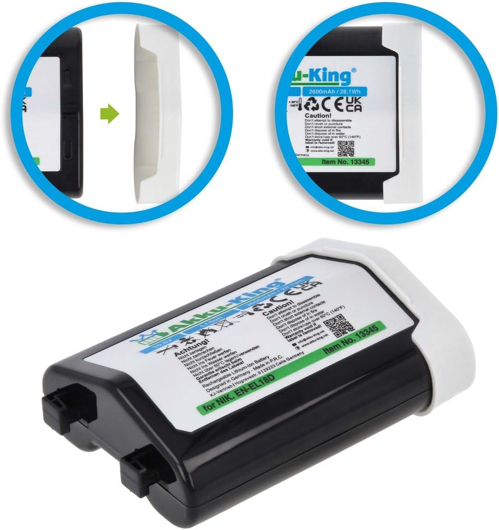 - Dieser Akku ist Ersatz: Nikon EN-EL18, EN-EL18a | Auch kompatibel in folgenden Batteriegriffen: Nikon MB-D18, Nikon MB-D17, Nikon MB-D12 (benötigen Akkufachabdeckung BL-5 4250716138948)