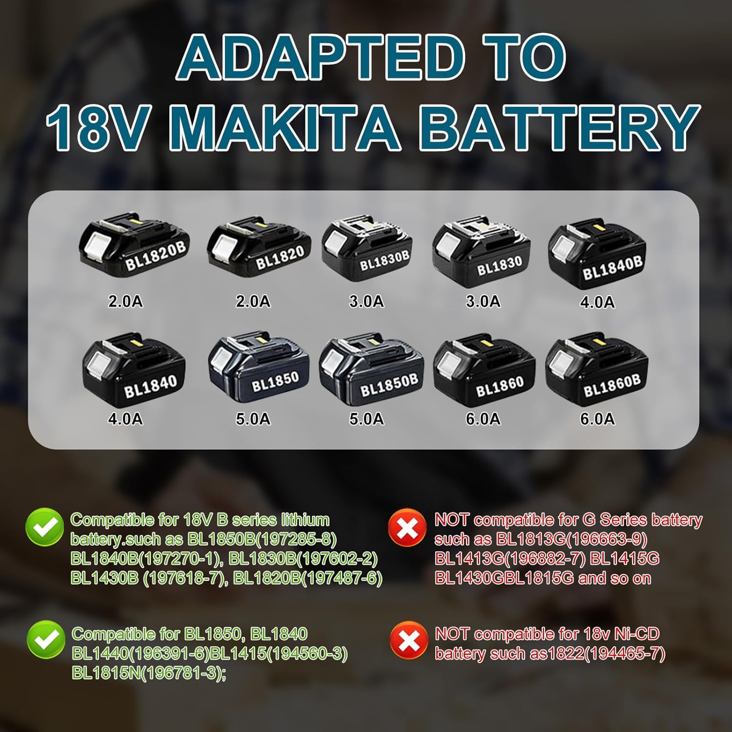 • Kompatibel mit Makita 18V Batterien - Der Akku Oszillationswerkzeug ist kompatibel mit Makita 18V BL1820 BL1830 BL1840 BL1850 BL1860 BL1820B BL1830B BL1840B BL1850B BL1860B, zum Schneiden, Schnitzen, Bohren, Schleifen, Polieren (ohne Akku, ohne