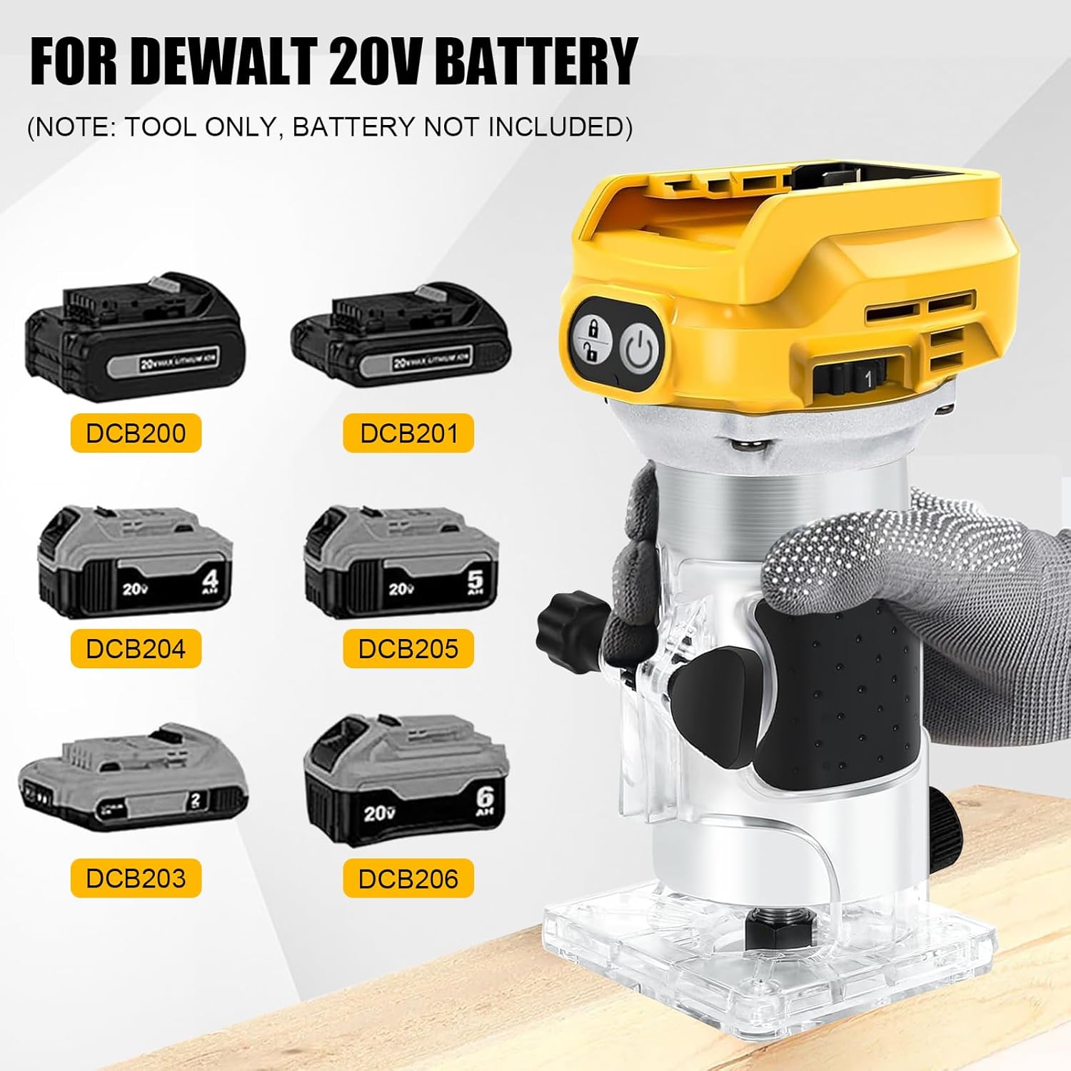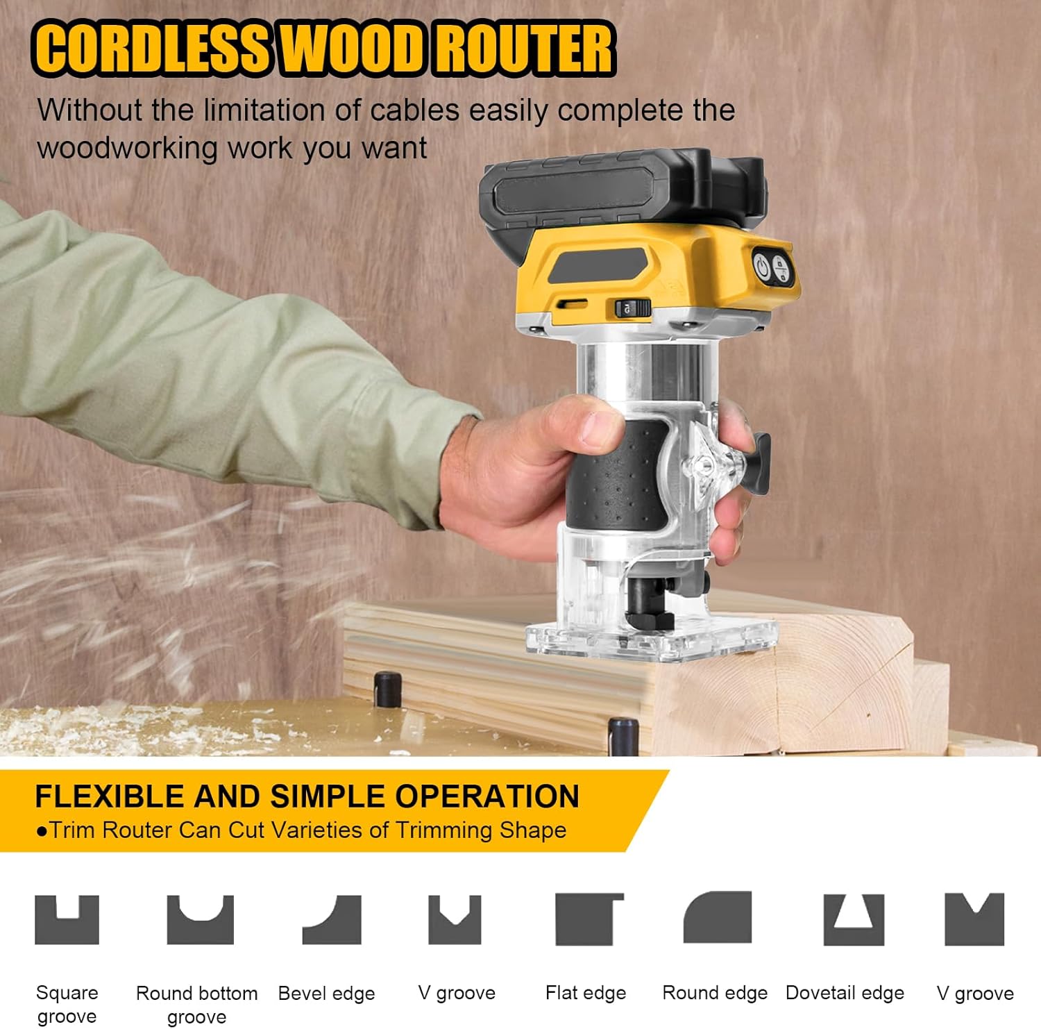 - Breite Anwendung: Diese Akku-Oberfräse eignet sich zum Anfasen, Trimmen, Kantenformen, Nuten und für andere Arbeiten an Holz, Kunsthandwerk, Kunststoffplatten, Furnieren und anderen ähnlichen Materialien, Oberflächenbearbeitung, Kurvenschneiden und