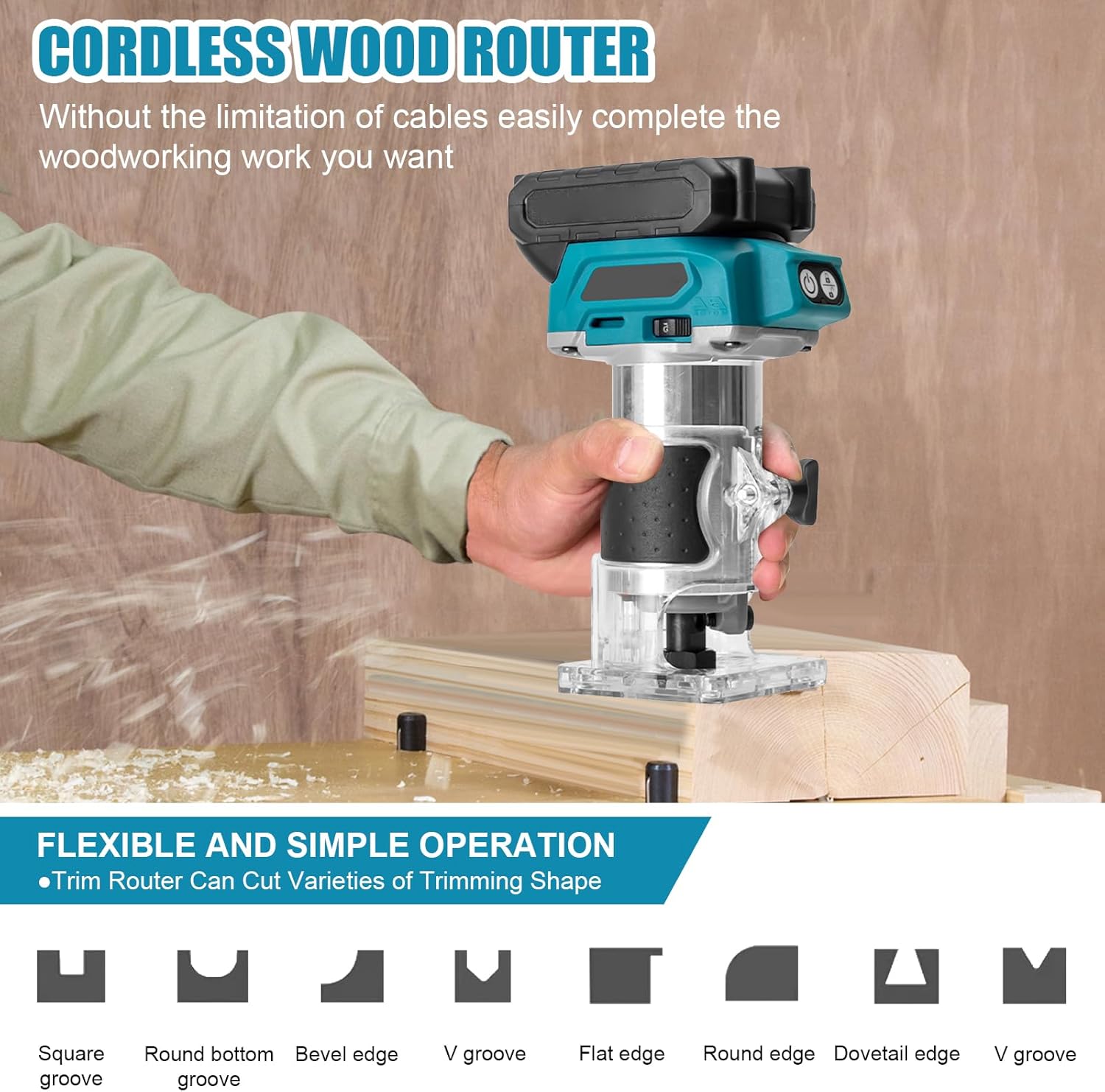 - Breite Anwendung: Diese Akku-Oberfräse eignet sich zum Anfasen, Trimmen, Kantenformen, Nuten und für andere Arbeiten an Holz, Kunsthandwerk, Kunststoffplatten, Furnieren und anderen ähnlichen Materialien, Oberflächenbearbeitung, Kurvenschneiden und