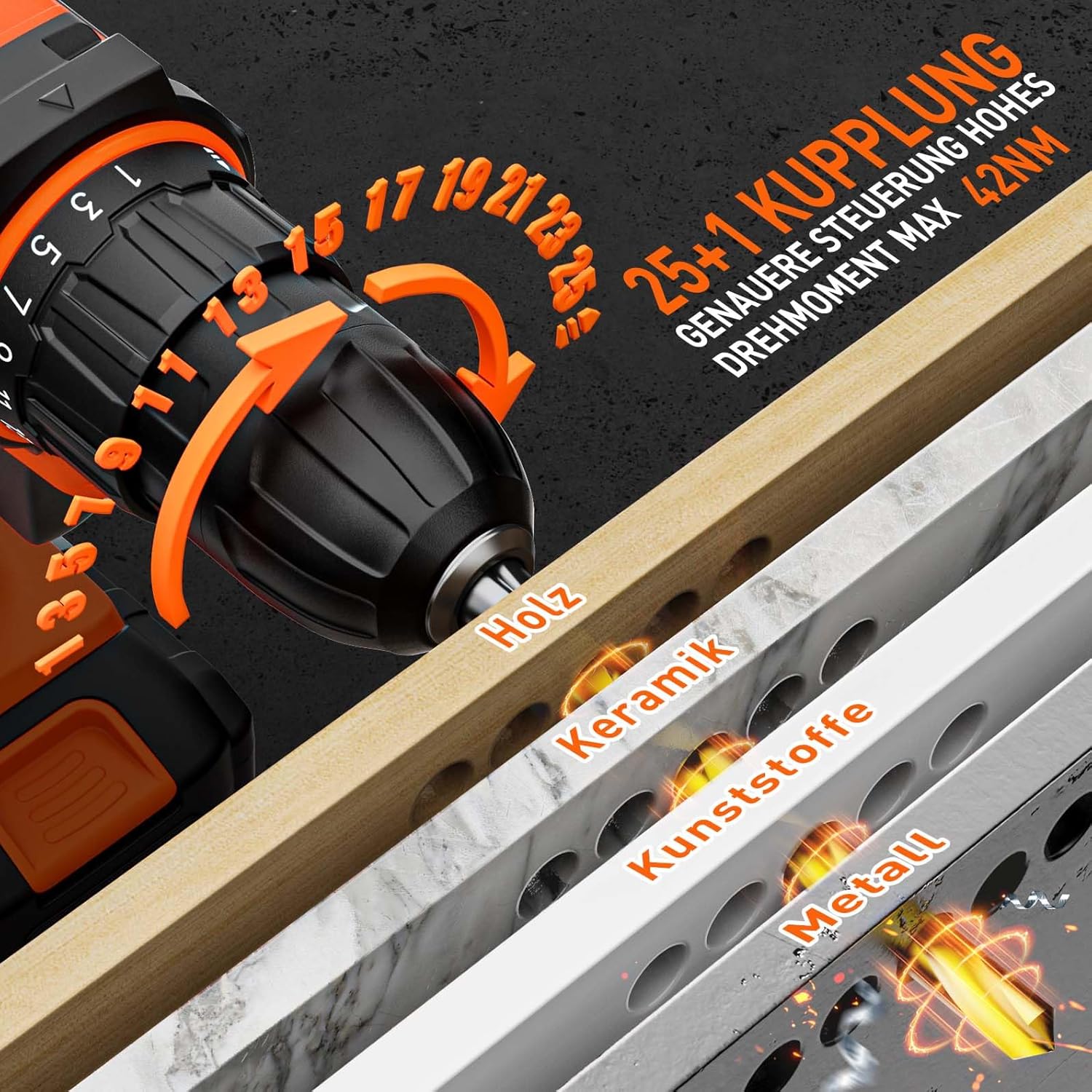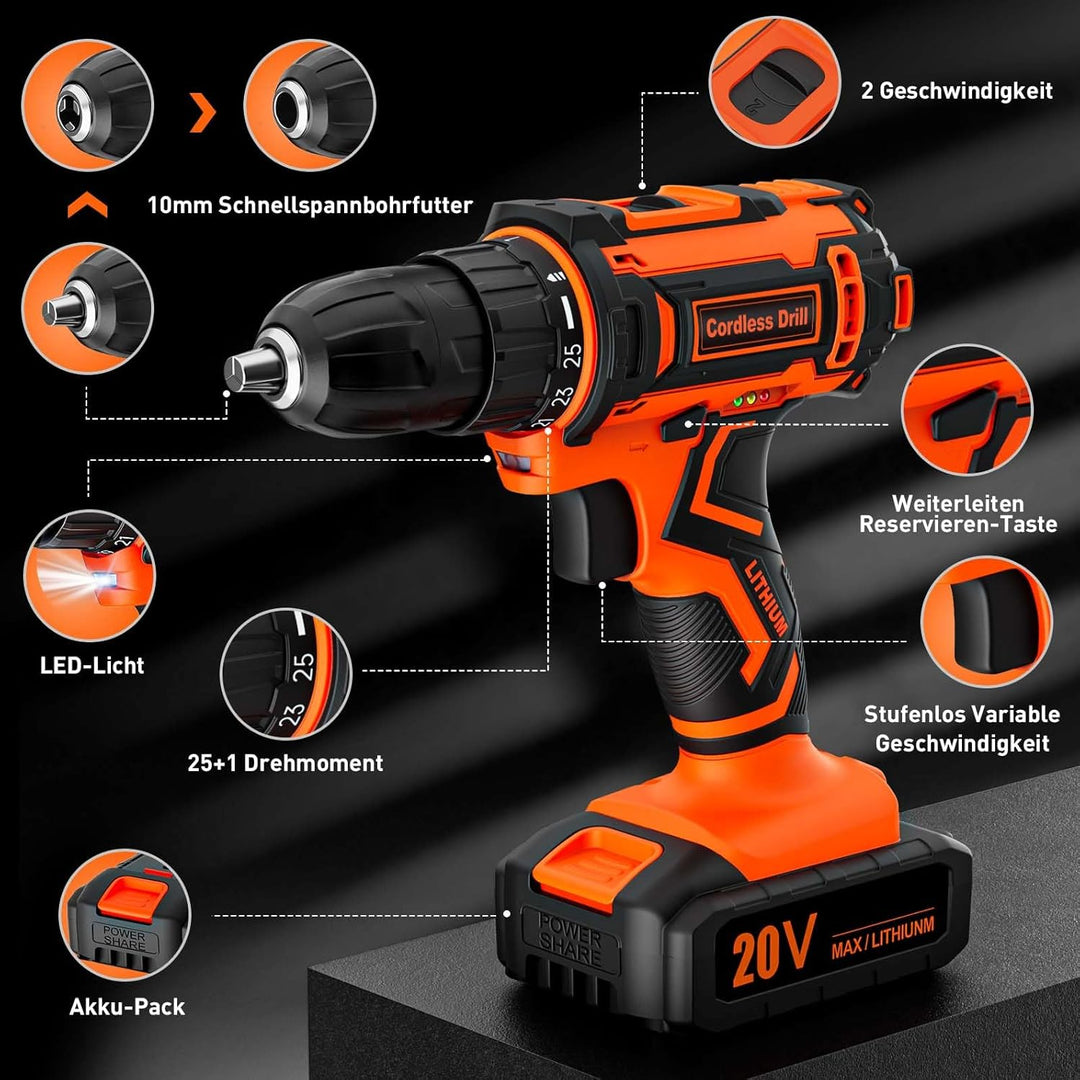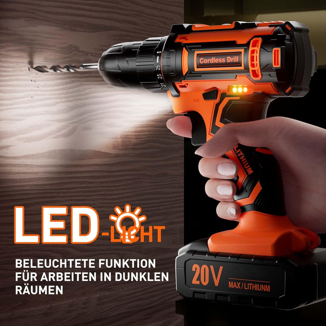 - Hochwertige Motoren Sorgen fur stabilen Betrieb: Der hochwertige Adaptivmotor sorgt mit hohes Drehmoment von 42Nm für die hohe Leistung der akku bohrschrauber. 25+1 Drehmomenteinstellung und Drehmomentschutz, der je nach Szenario angepasst werden kannUm