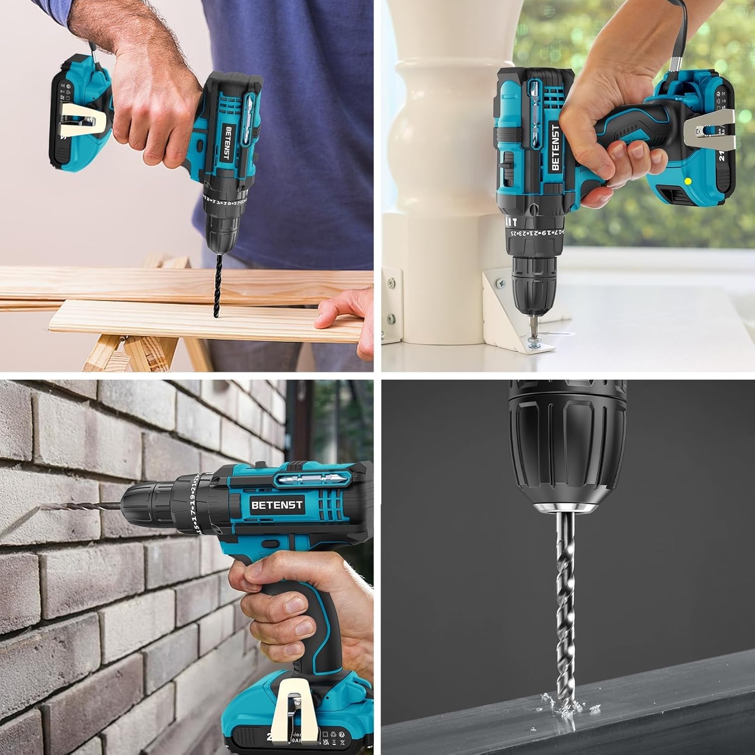 • 【3-in-1 System Bohrhammer & 42N.m Maximales Drehmoment】BETENST Akkuschrauber verfügt über 3 Arbeitsmodi-Schrauben, Bohren und Hammerbohren. Mit einem maximalen Drehmoment von 42 Nm kann der Kombibohrer problemlos Löcher bohren und Schrauben in