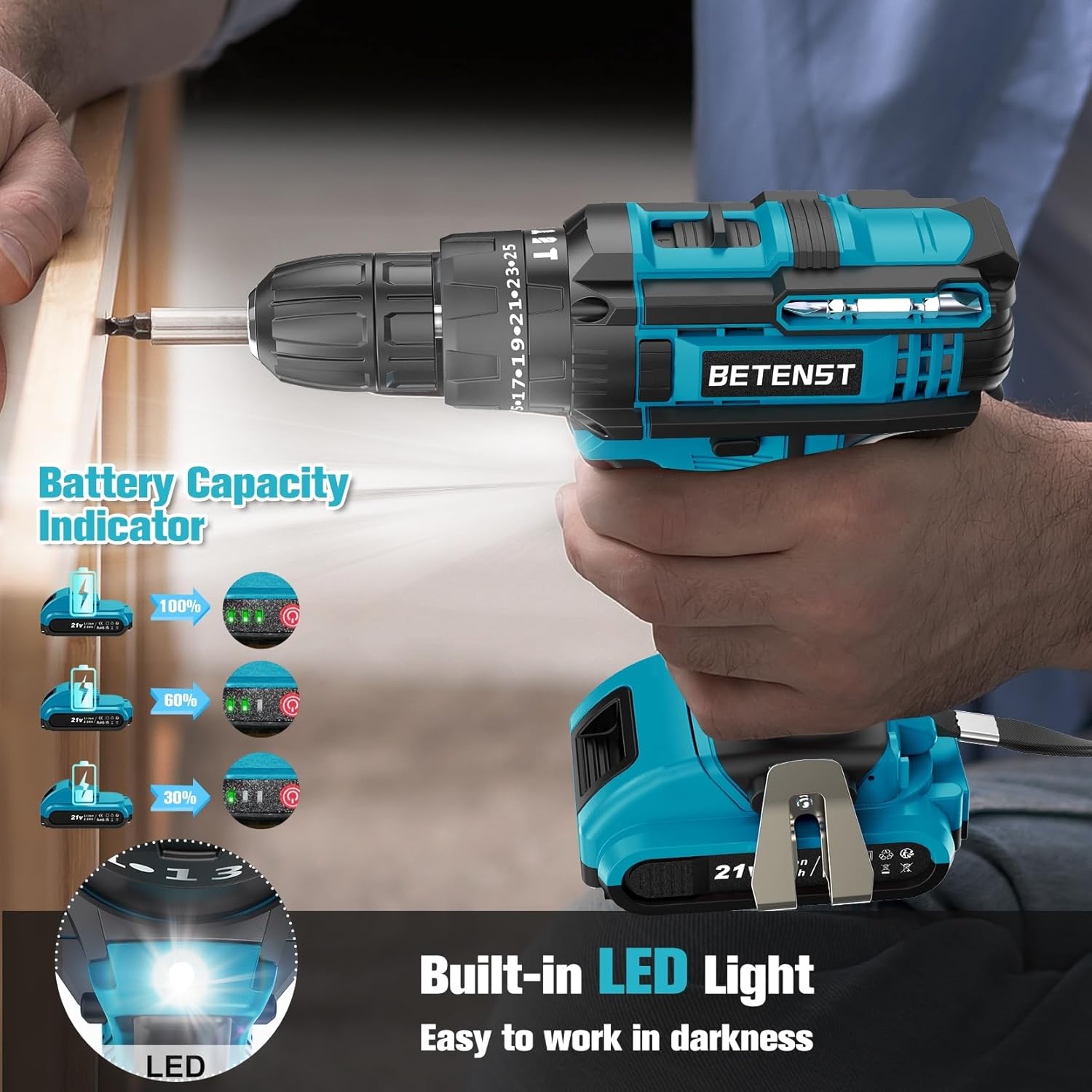 Akkuschrauber 21V, BETENST Akku Bohrschrauber mit 2 Akkus 2.0Ah, 42Nm Max, 25 * 3 Drehmomentstufen,