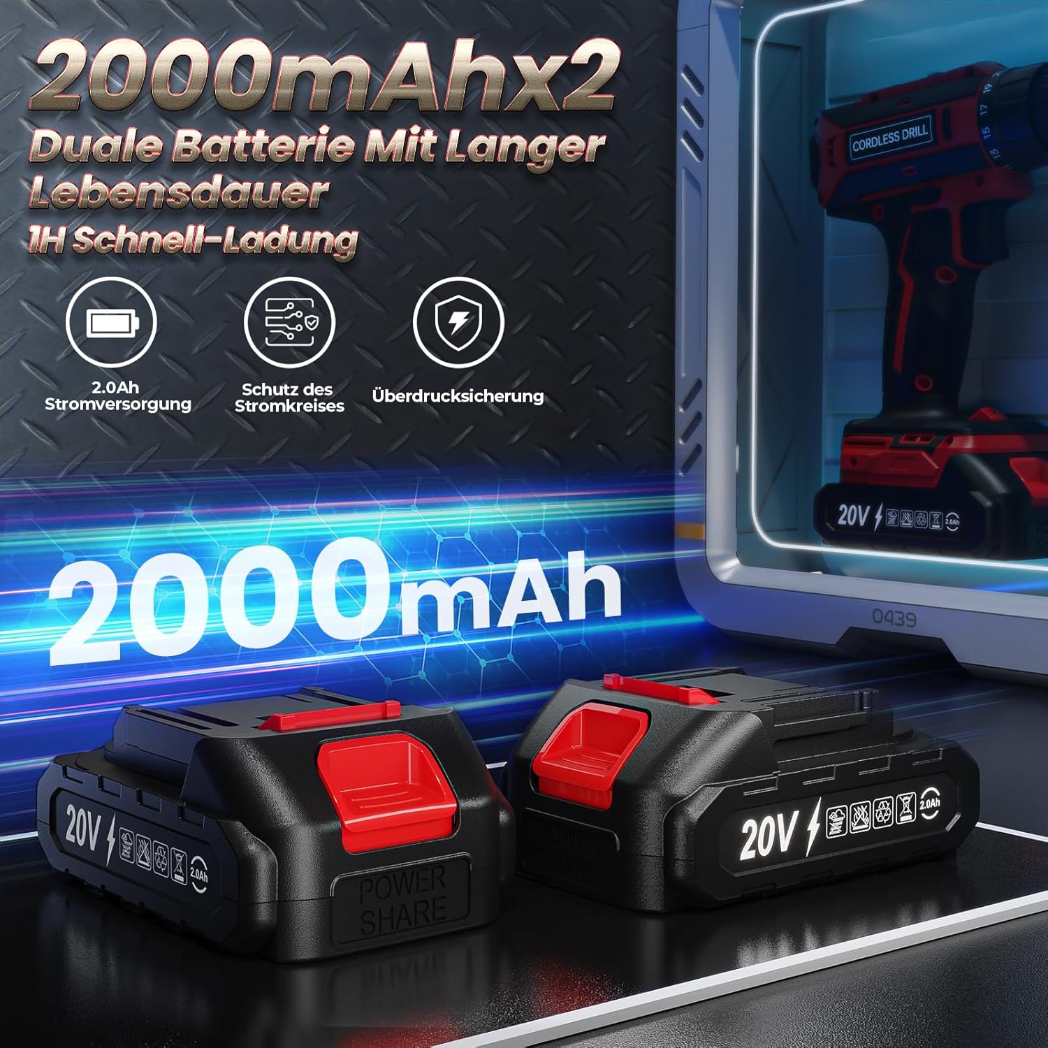 - Zwei Akkus für lange Lebensdauer und Anpassungsfähigkeit: zwei 2000-mAh-Lithium-Ionen-Akkus und ein Schnellladegerät machen die Arbeit effizienter. Jeder Akku wurde für Tausende von Zyklen getestet, so dass Sie sich keine Sorgen um seine