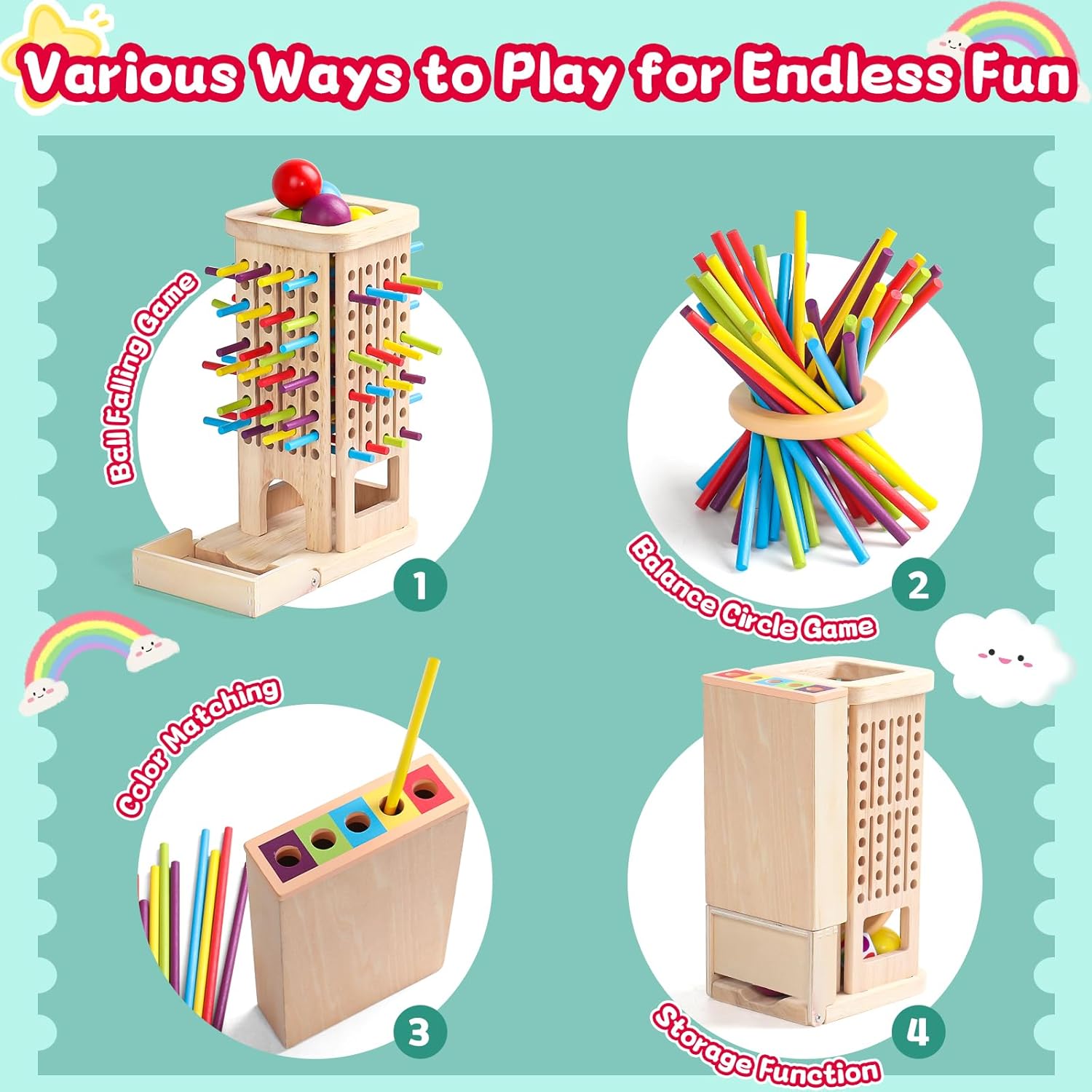- 3 IN 1 Pädagogische Spielzeug ab 3 Jahre: Dieses spiele ab 3 4 jahren hat drei Spielmöglichkeiten: Balls fall, Balancierring, klassifizierung farben. Der farblernturm hat einen dreiseitigen Zaun, um zu verhindern, dass die Bälle verstreut werden.