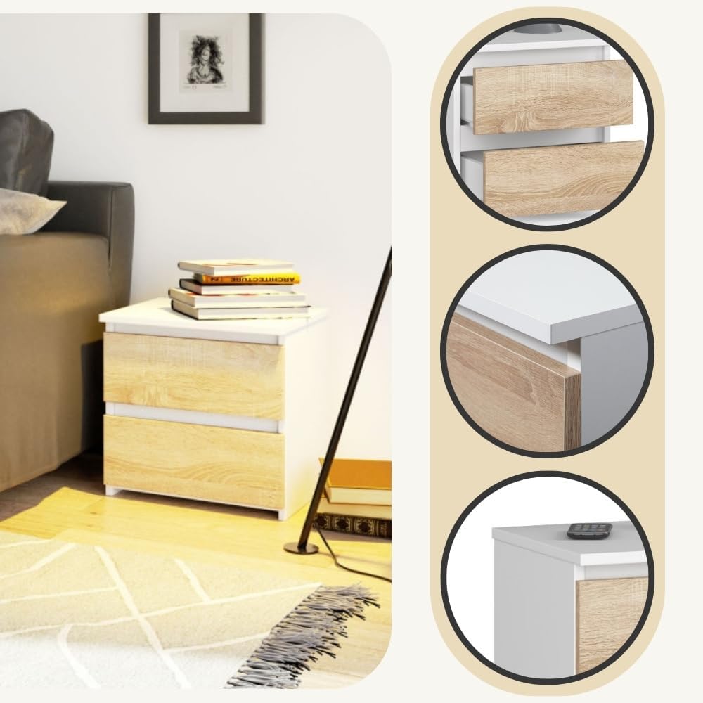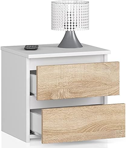 - Kompakte Masse und viel Abstellfläche: Mit seinen kompakten Massen ist der Nachttisch eine sehr gute Wahl für kleinere Schlafräume, wo zusätzliche Ablagefläche benötigt wird. Mit 2 Schubladen bietet er viel Stauraum für alles, was am Bett braucht.