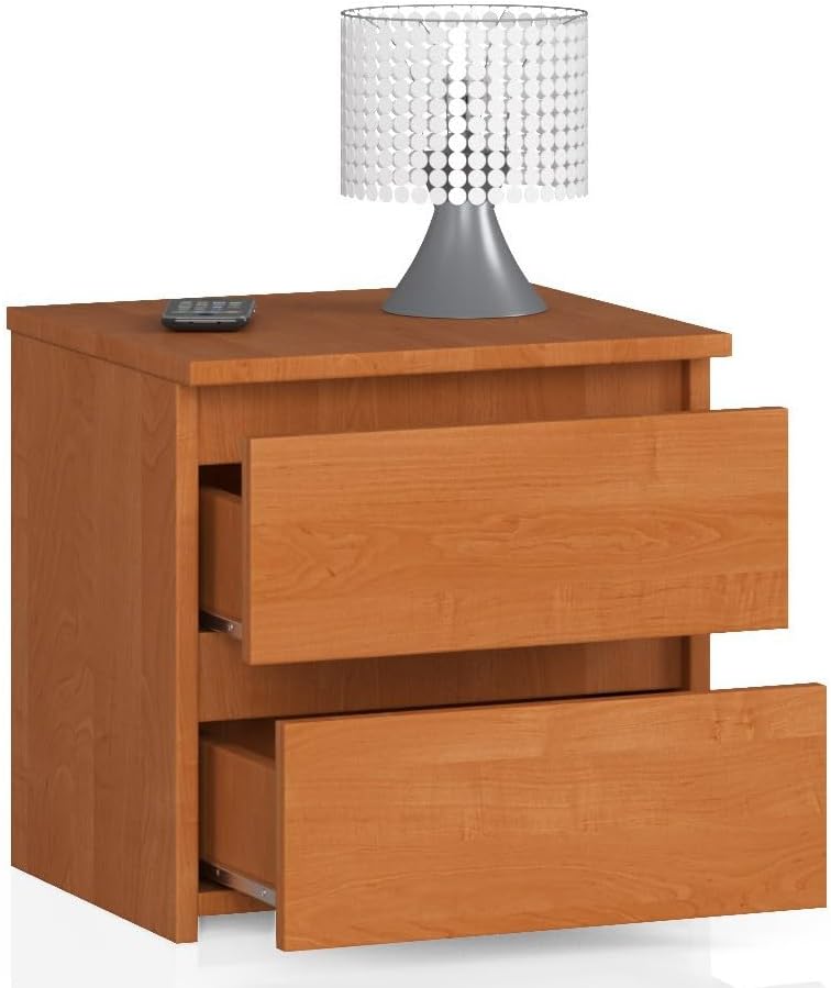 AKORD Nachttisch in minimalistischer Optik, mit 2 Schubladen, B40 x H40 x T35 cm Erle, Erle