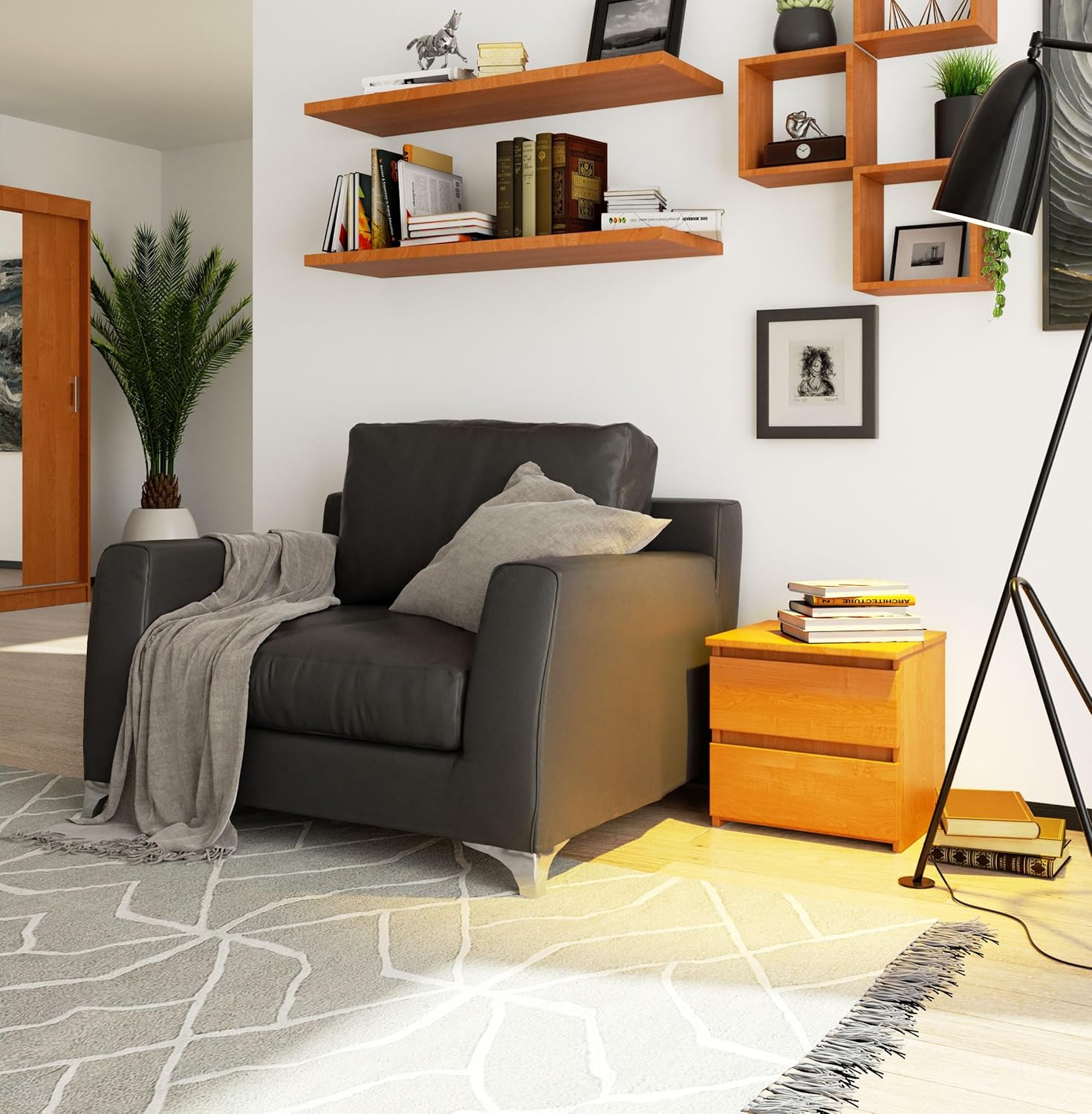 • Praktisch und vielseitig: Der Nachtisch ist eine praktische Aufbewahrung für kleine und schmale Schlafräume. Die grifffreien Schubfächer sind mit leichtgängigen Führungsschienen aus Metall ausgestattet.