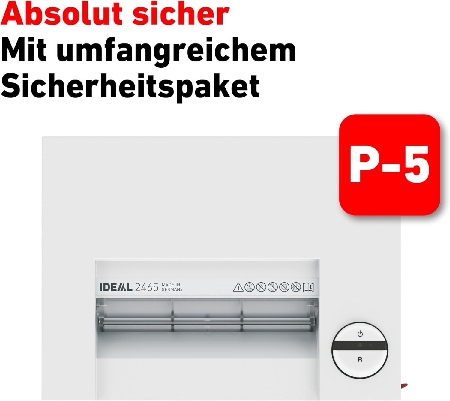 Aktenvernichter IDEAL 2465, Sicherheitsstufe P-5, Partikelschnitt 2 x 15 mm, 11 Blatt Kapazität, 35