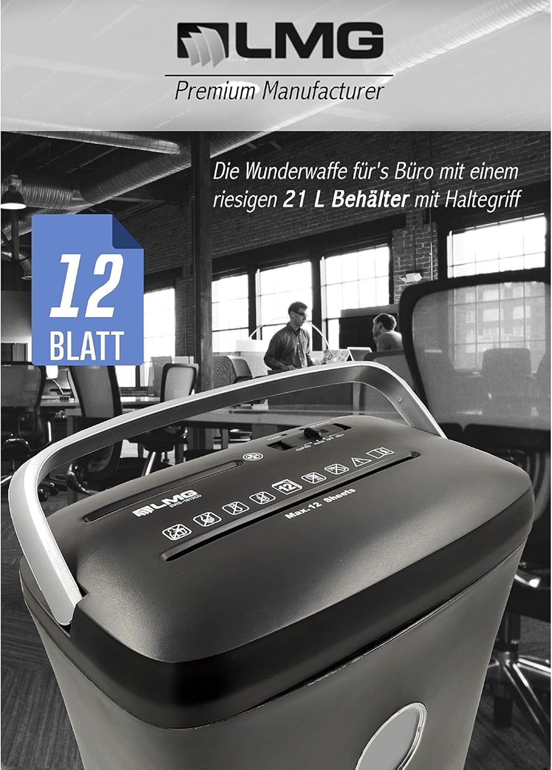 - ✔ SCHNELL & UNFASSBAR KRAFTVOLL: LMG Aktenschredder sind dafür bekannt, dass sie mit besonders kraftvollen und hochwertigen Schneidewerken ausgestattet sind. Dieser Profi vernichtet problemlos bis zu 12 Blatt auf einmal mit einer Geschwindigkeit von 2