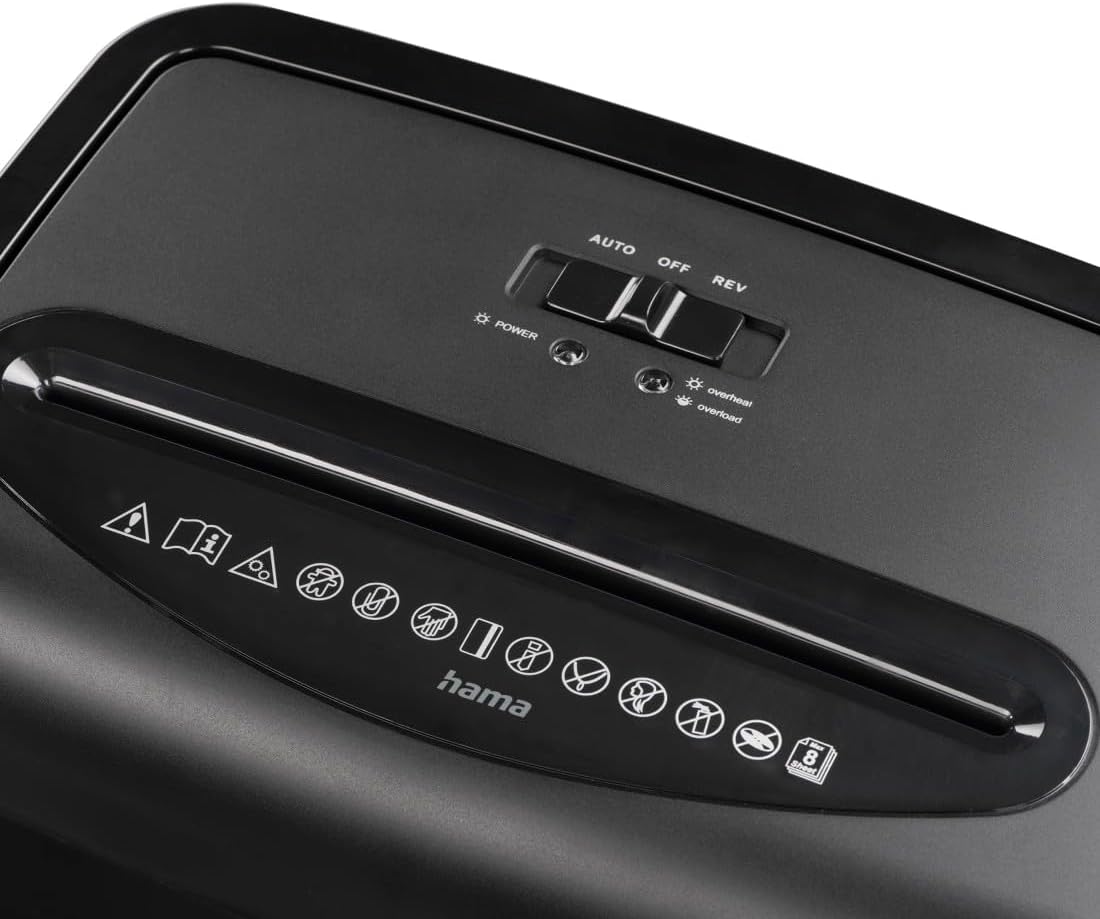 - Schredder mit Automatik: automatische Start-/Stopp-Funktion – Schneidwalzen arbeiten nur, wenn Material zugeführt wird, stoppen nach dem Zerkleinern, Rücklauffunktion für verhakte Dokumente