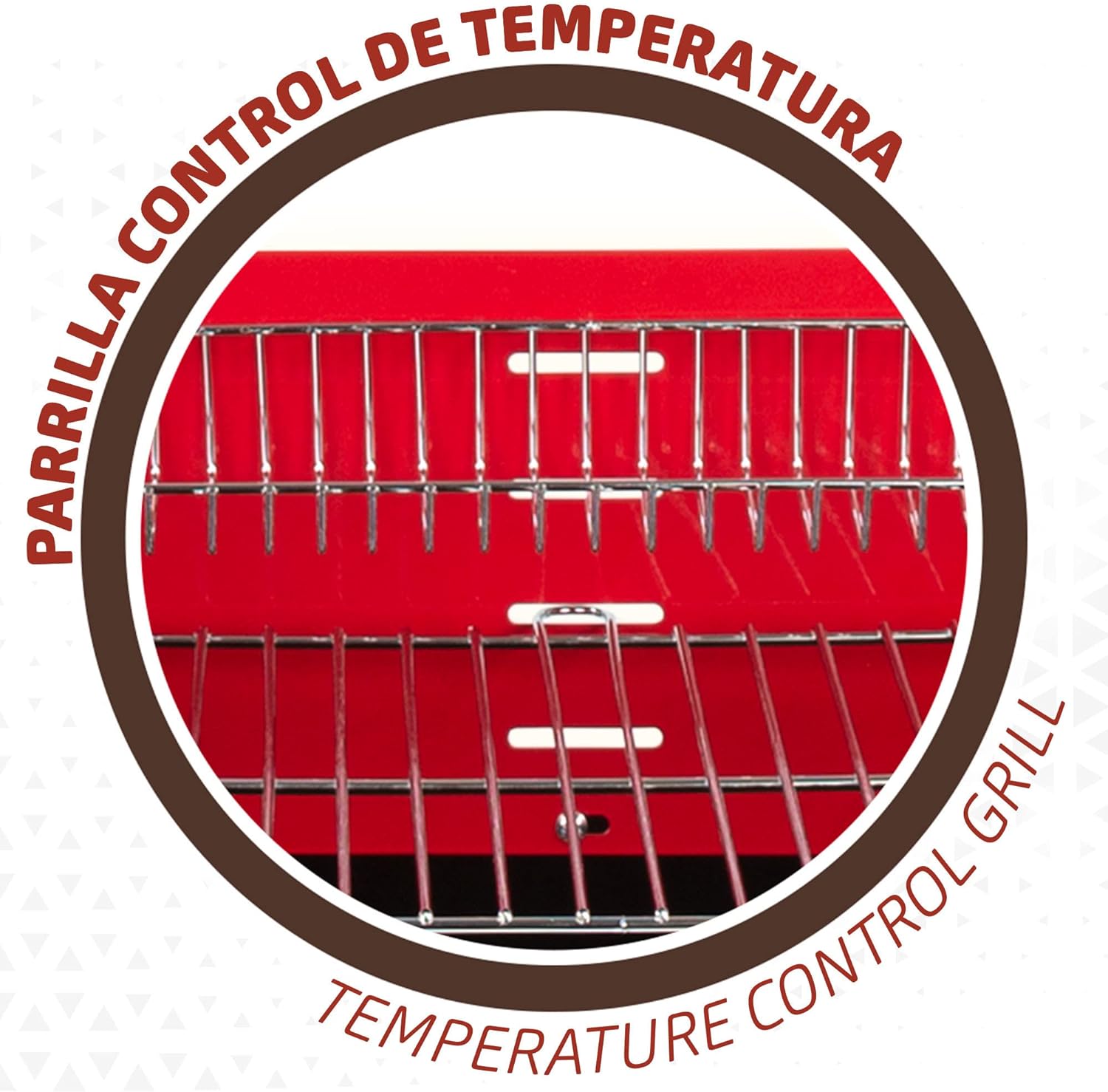 - Funktionalität: Ein breiter Grillrost mit 4-fach verstellbarer Höhe für mehr oder weniger in der Nähe der Glut, ein Grillrost zum Warmhalten von Lebensmitteln und ein unteres Hilfsgitter zum Aufstellen von Utensilien