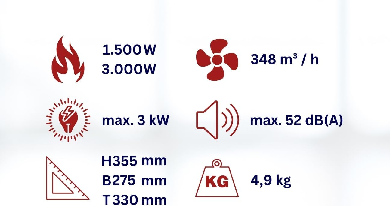 - Reiner Ventilatorbetrieb auch ohne Heizfunktion möglich + Auch für den Dauerbetrieb geeignet !