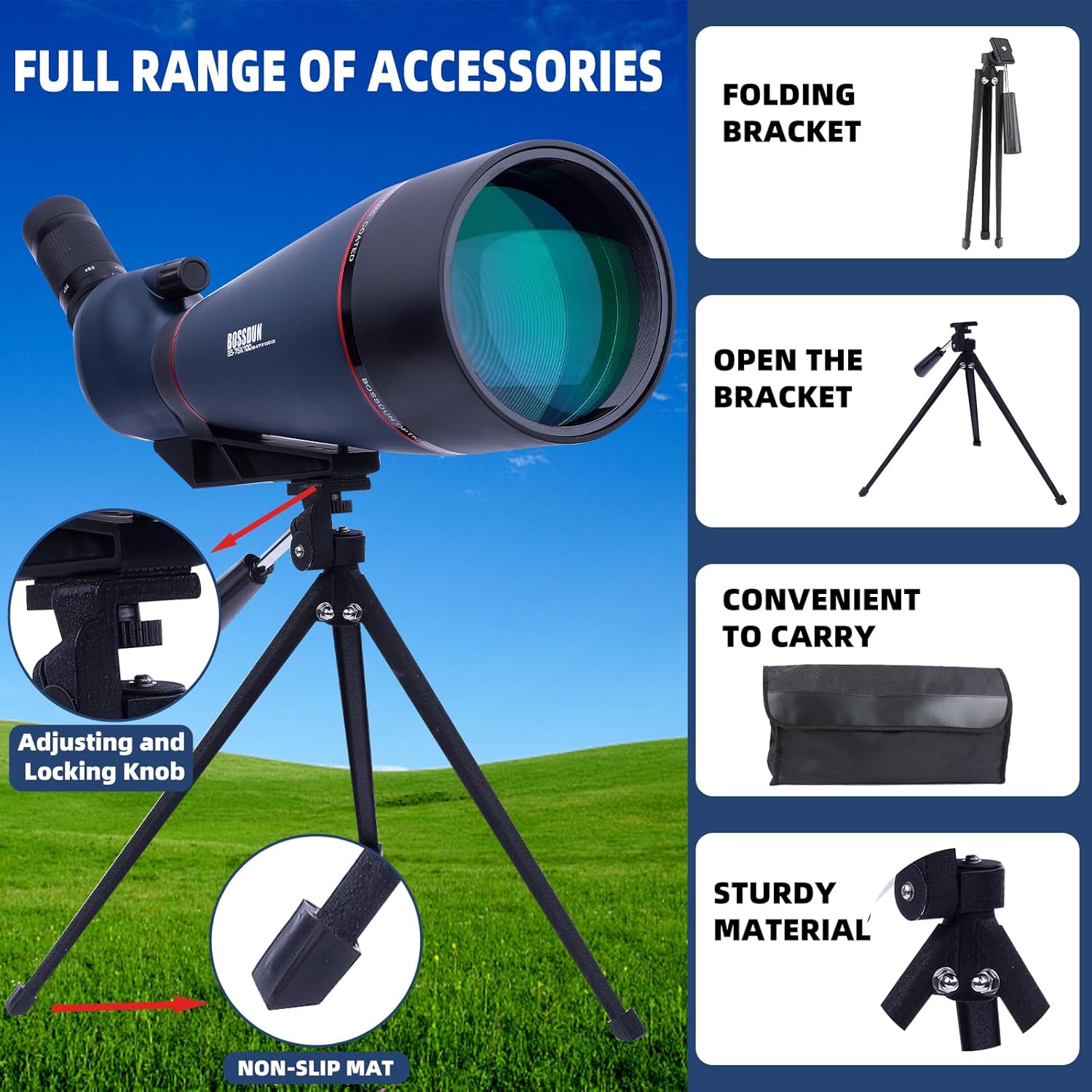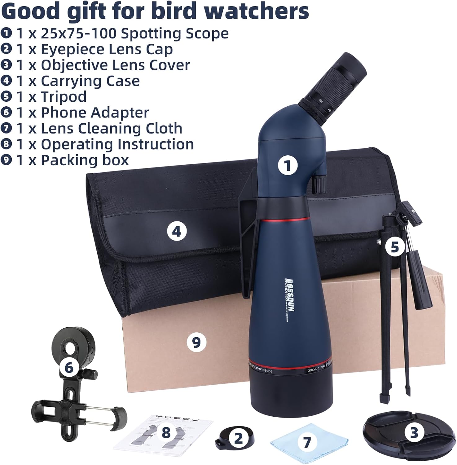 - 【Leistungsstarkes Zubehör】 Jedes professionelle Spektiv-Set enthält eine Tragetasche und einen Schultergurt, ein Stativ und einen Telefonadapter. Das Stativ ist perfekt für das Schiessen von Zielen, und der aktualisierte Telefonadapter passt auf