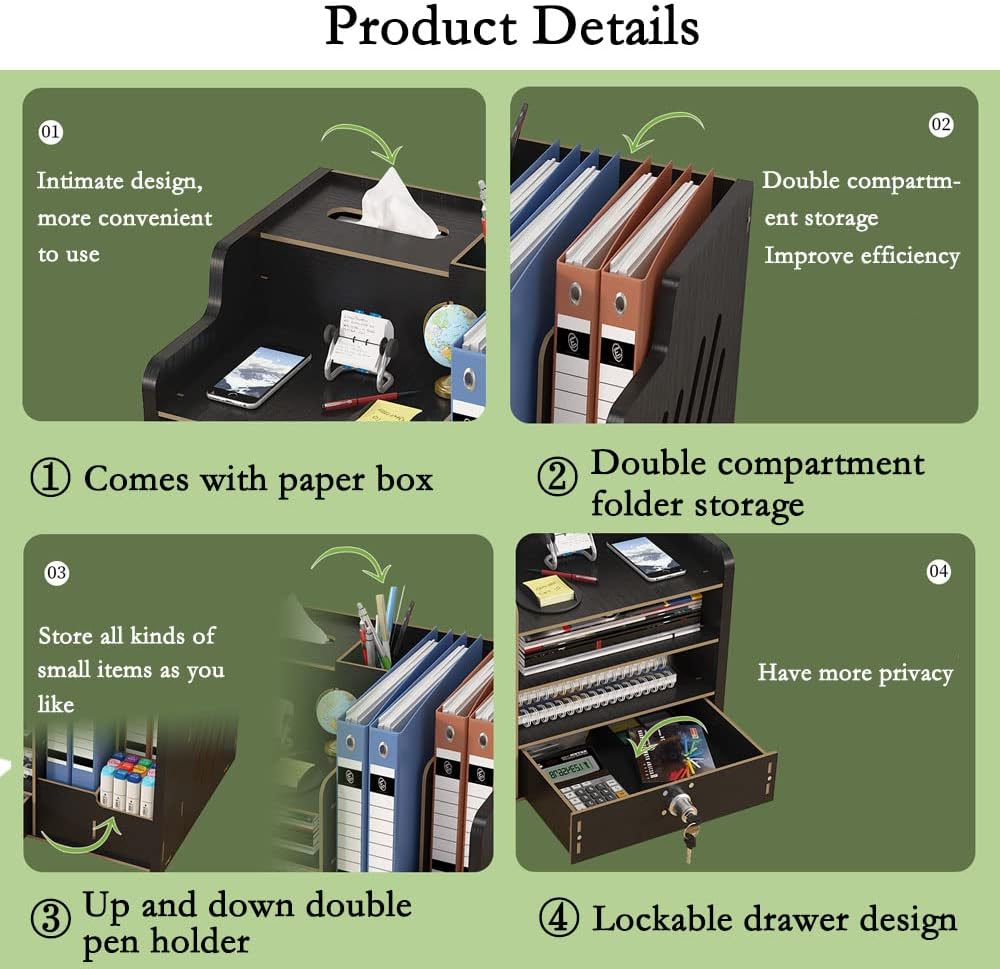 - ✎ Ultragrosse Kapazität: Es kann problemlos grosse Ordner und Bücher oder mehrere Ihrer Schreibtisch-Accessoires halten, einschliesslich Hefter, Stifte/Bleistifte, A4-Papier, Scheren, Notizbücher, Ihr Telefon und vieles mehr