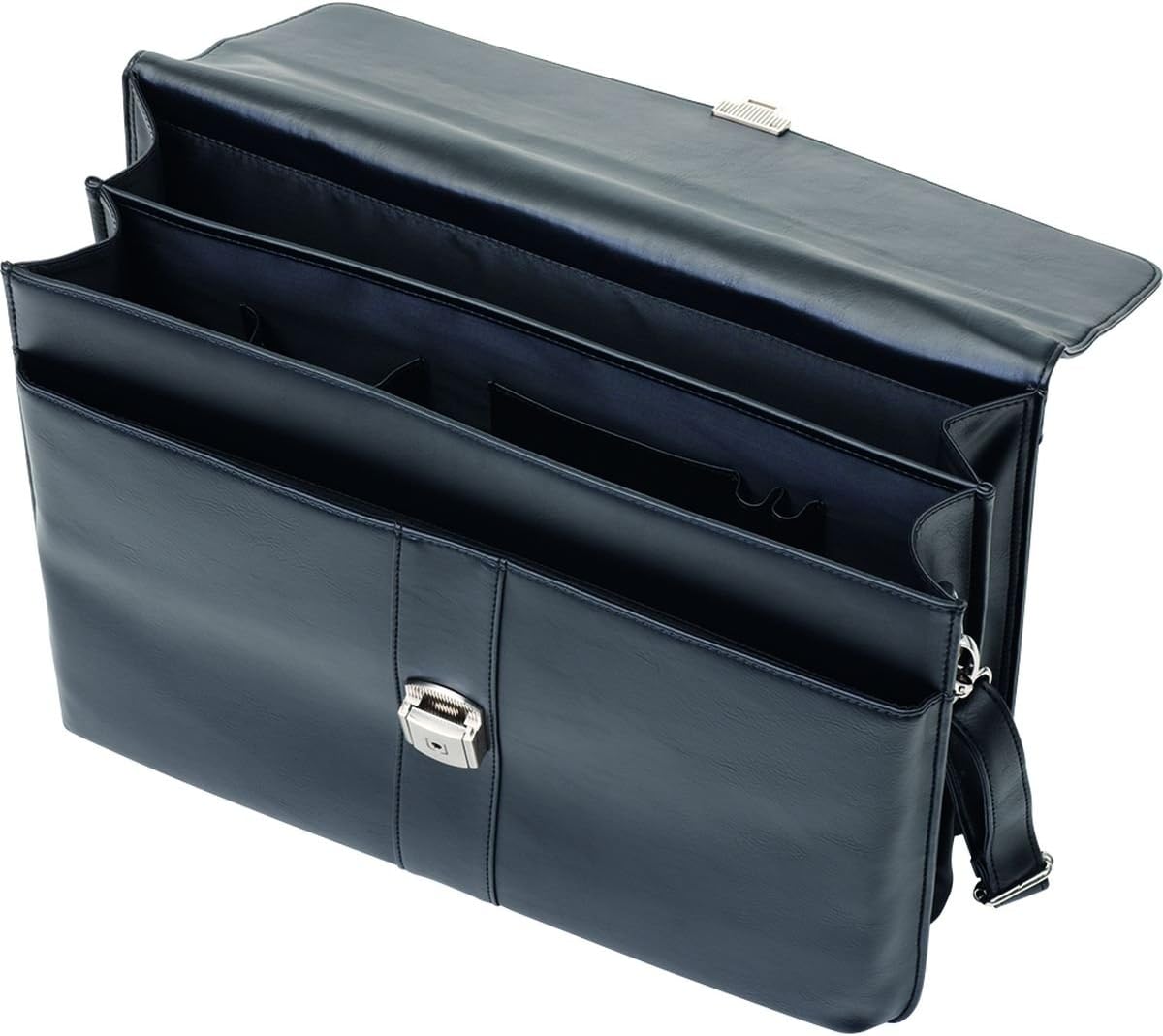 PRODUKTBESCHREIBUNGEN Alassio - edle und funktionelle Ausstattung für den Arbeitsalltag! Mit dieser klassischen Aktentasche PESCARA von Alassio erhalten Sie eine praktische und gut aussehende Businesstasche für Ihre Unterlagen und Utensilien. Hergestelllt ist sie aus strapazierfähigem Kunstleder in schwarzer Farbe und hat die Aussenmasse von ca. 41 x 31 x 12,5 cm. Für eine edle Optik sorgt die elegante Form, der passende schwarze Tragegriff und das silber matte Schloss. Auch die Karabinerhaken des Schultertragegurtes sind in der gleichen silber matten Farbe. Der Tragegurt ist abnehmbar, kann in der Länge eingestellt werden und verfügt über ein Polster für die Schulter. Im Inneren befindet sich ein Vorfach, zwei grosse Hauptfächer, ein Fach für Visitenkarten, ein Handyfach und zwei Stiftschlaufen. Die Innenmasse betragen ca. 39,5 x 30,5 x 12 cm und das Fassungsvermögen liegt ca. 14,5 Liter. Diese Aktentasche wird Ihnen gute Dienste leisten, ist langlebig und zeitlos chic. So sind Sie perfekt für den Alltag ausgestattet und können sich ständig an dem schönen Design erfreuen. Alassio – Meisterwerke in jeder Grössenordnung. Jahrelange Erfahrung in der Verarbeitung von hochwertigem Leder sind die Grundlage für die ausserordentliche Qualität der Business- und Freizeitkollektionen. Alassio fertigt Meisterstücke – einzigartig im Design, durchdacht in der Funktionalität und handwerklich perfekt in der Verarbeitung.