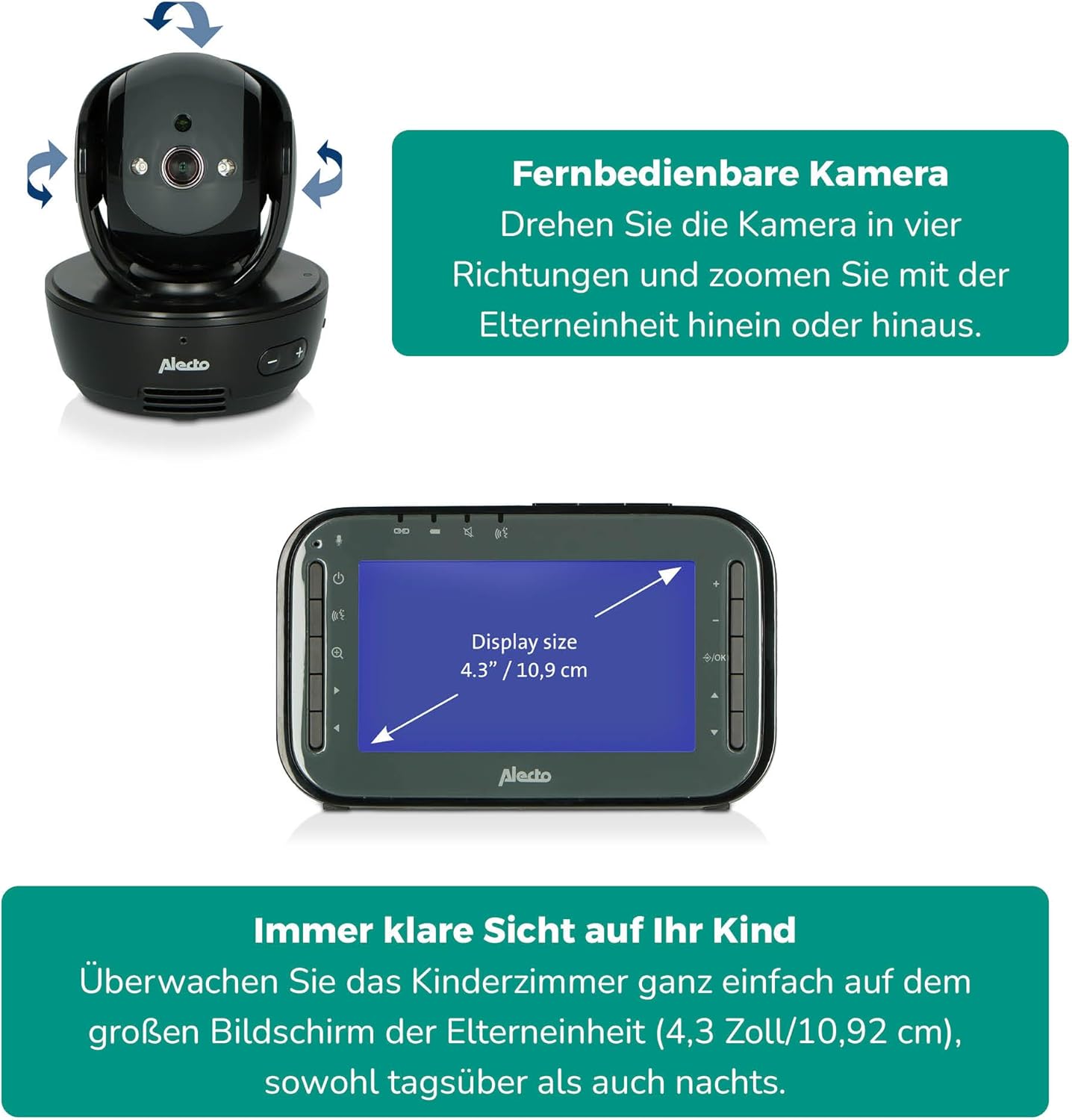 - 【Grosser Bildschirm】- Das Alecto DVM200MBK Video Babyphone verfügt über einen grossen und deutlich ablesbaren Bildschirm mit einer Diagonalen von 11 Zentimetern. Der Bildschirm ist natürlich auch die Steuereinheit des Gerätes und beherbergt alle