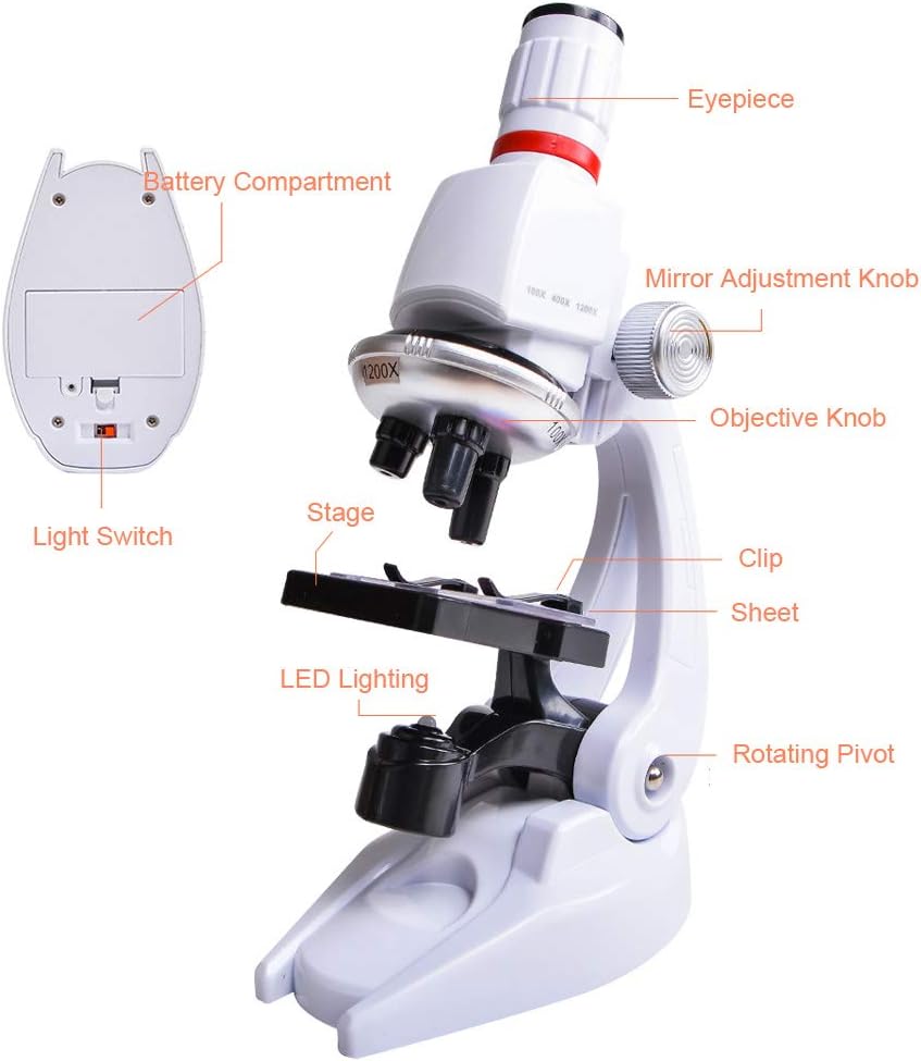 - Premium-Qualität: Hergestellt aus hochwertigem ABS-Acryl, langlebig und nicht leicht zu zerbrechen. Keine Sorgen über Glasmaterial können die Finger von Kindern zerkratzen. Es ist ein geeignetes Plastikmikroskop für Anfänger. Hinweis: Es ist ein