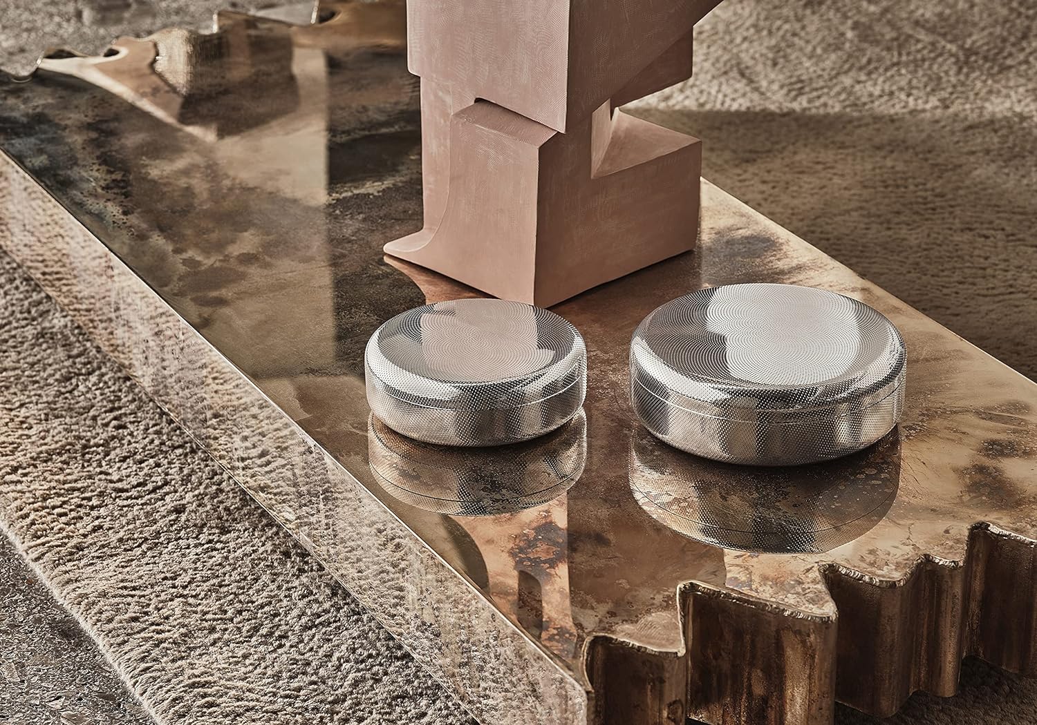 - Design: Alessi interpretiert die alte Goldschmiedetechnik der etruskischen Körnung neu und dank ihrer Wechselwirkung mit Licht leuchtet die Oberfläche des Extra Ordinary Texture-Behälters mit Reflexionen