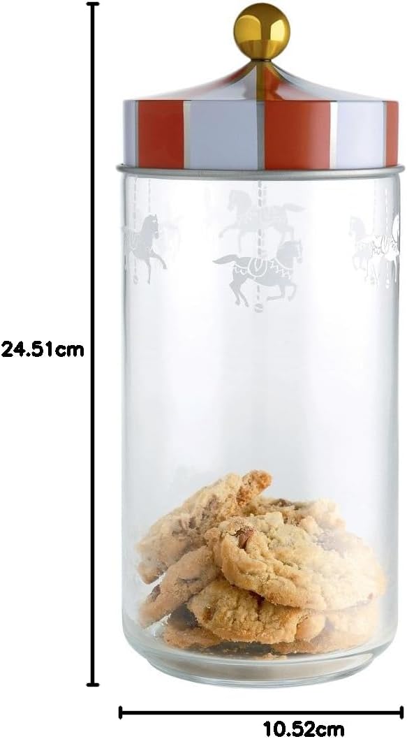 Alessi Küchendose mit abgedichtetem Deckel, Weissblech,Glas, Bunt, 10.5 x 10.5 x 24.5cm, 10.5 x 10.5