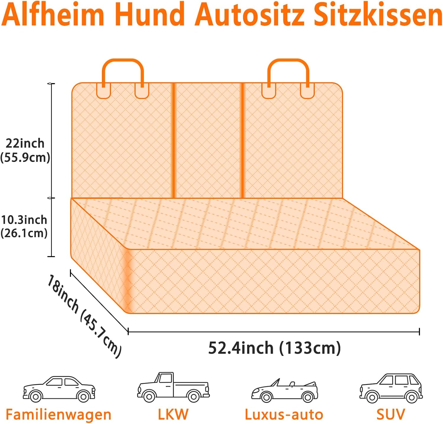 - ✅【Universelle Passform für die meisten Autos】 Alfheim Dog Autositzbezug: 133 x 127 cm / 52,4 x 50 inch. Es passt perfekt zu den meisten Autos wie LKWs, SUVs usw. Gleichzeitig haben wir zwei Klettverschlüsse am Autositzbezug angebracht, um den