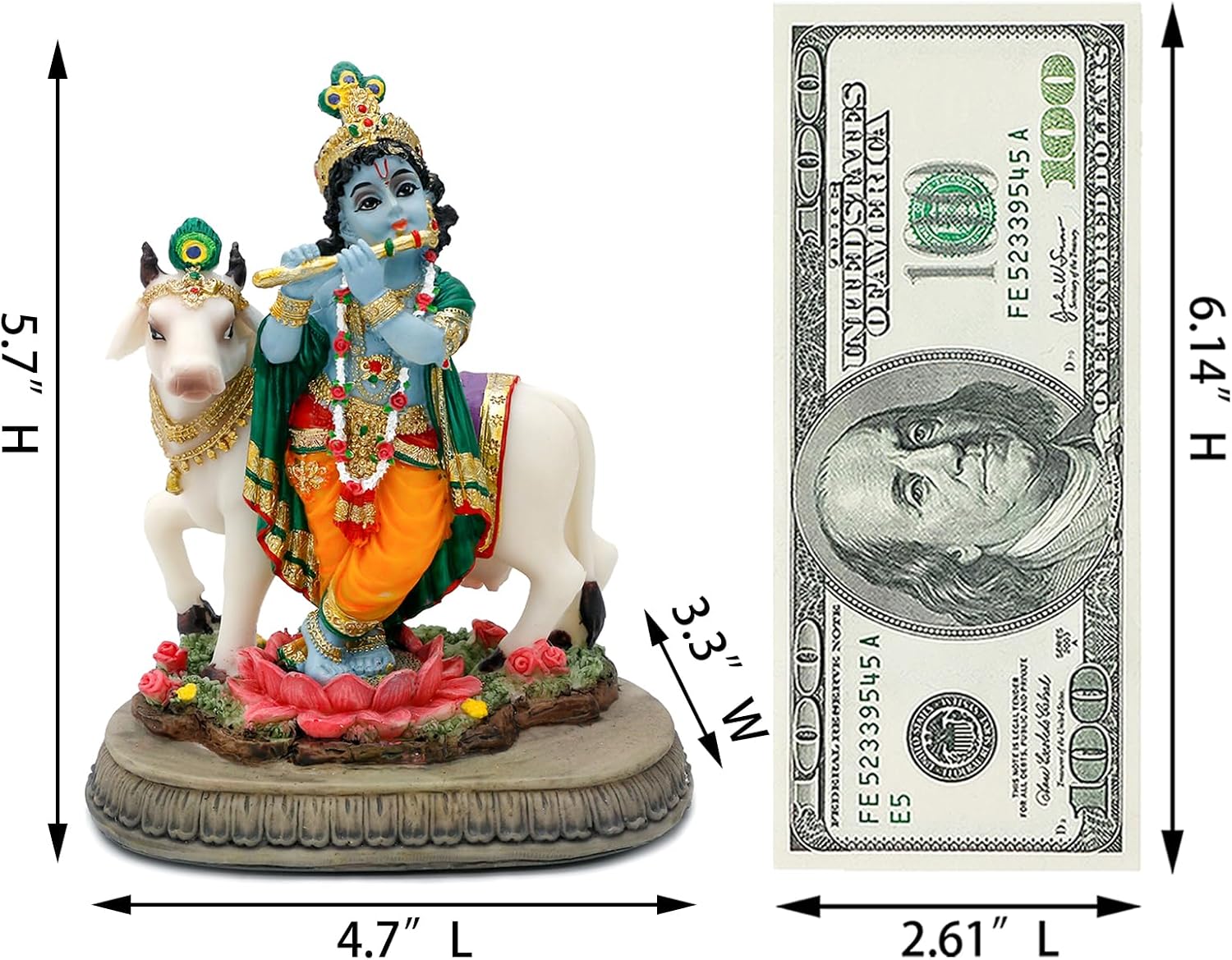 - Exquisite 5.7 High Multicolor Hindu God Lord Krishna Statue, die die göttliche Essenz von Lord Krishna und seine Verbindung mit der Kuh einfängt.