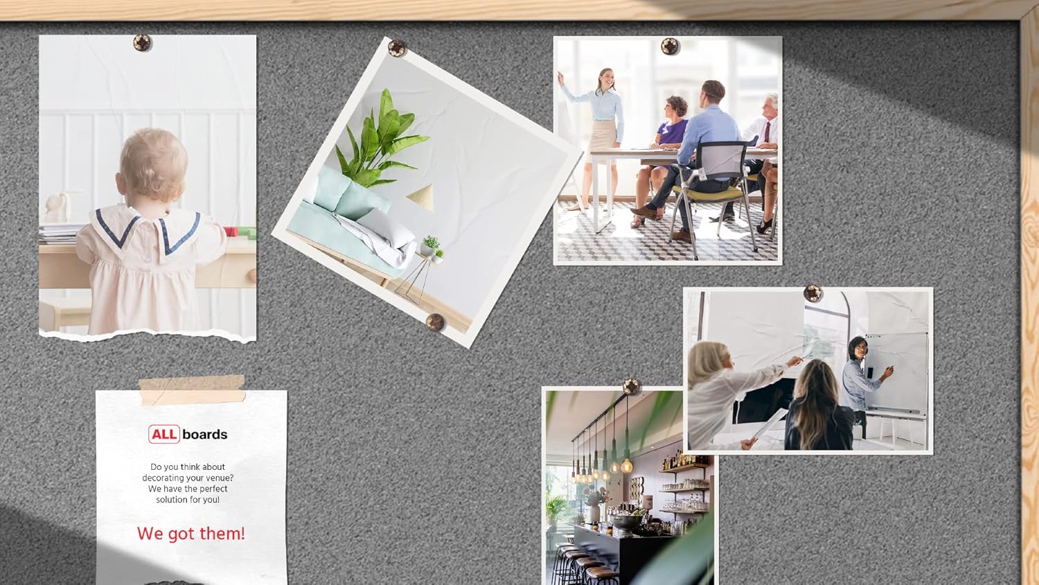 ALLboards Grau Pinnwand mit Holz Rahmen 90x60cm Korktafel Korkwand Pinnwand Kork Grau Oberfläche Kor