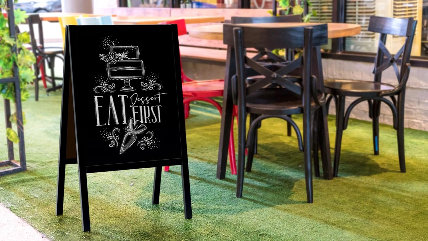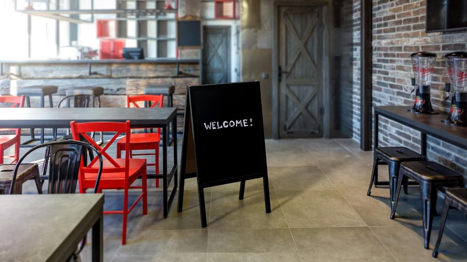 - OBERFLÄCHE – kratzfeste, hochwertige, beidseitig beschreibbare Kreidefläche, hergestellt aus schwarz lackierter, hochdichter HDF-Faserplatte. Die Oberfläche ist nicht wasserfest.