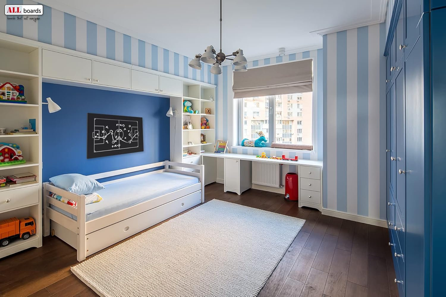 - EINFACHE MONTAGE – Die Tafel besitzt an jeder Ecke jeweils zwei Öffnungen, deren Durchmesser eine Montage mit Schrauben und Dübel ermöglicht. Die magnetische Tafel Metallboards kann sowohl horizontal als auch vertikal an der Wand angebracht werden.