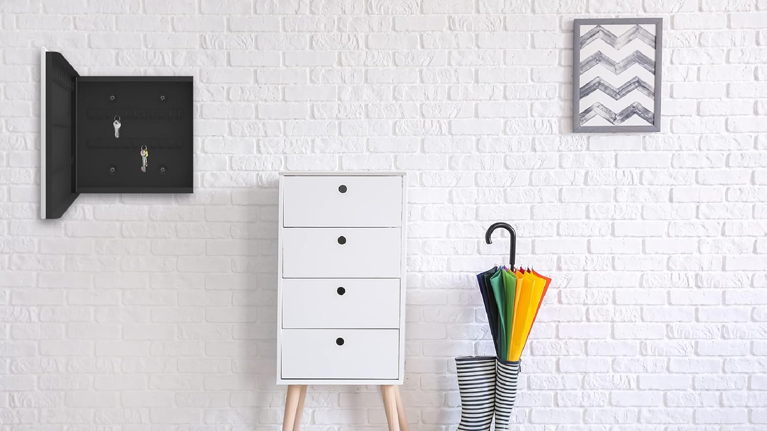 - Multifunktionalität des Kastens: Der Kasten erfüllt gleichzeitig zwei Funktionen. Zum einen ermöglicht er das sichere Aufbewahren des Schlüsselbunds und stellt zum anderen eine ästhetisches Dekorationsmittel Ihrer Räumlichkeit dar