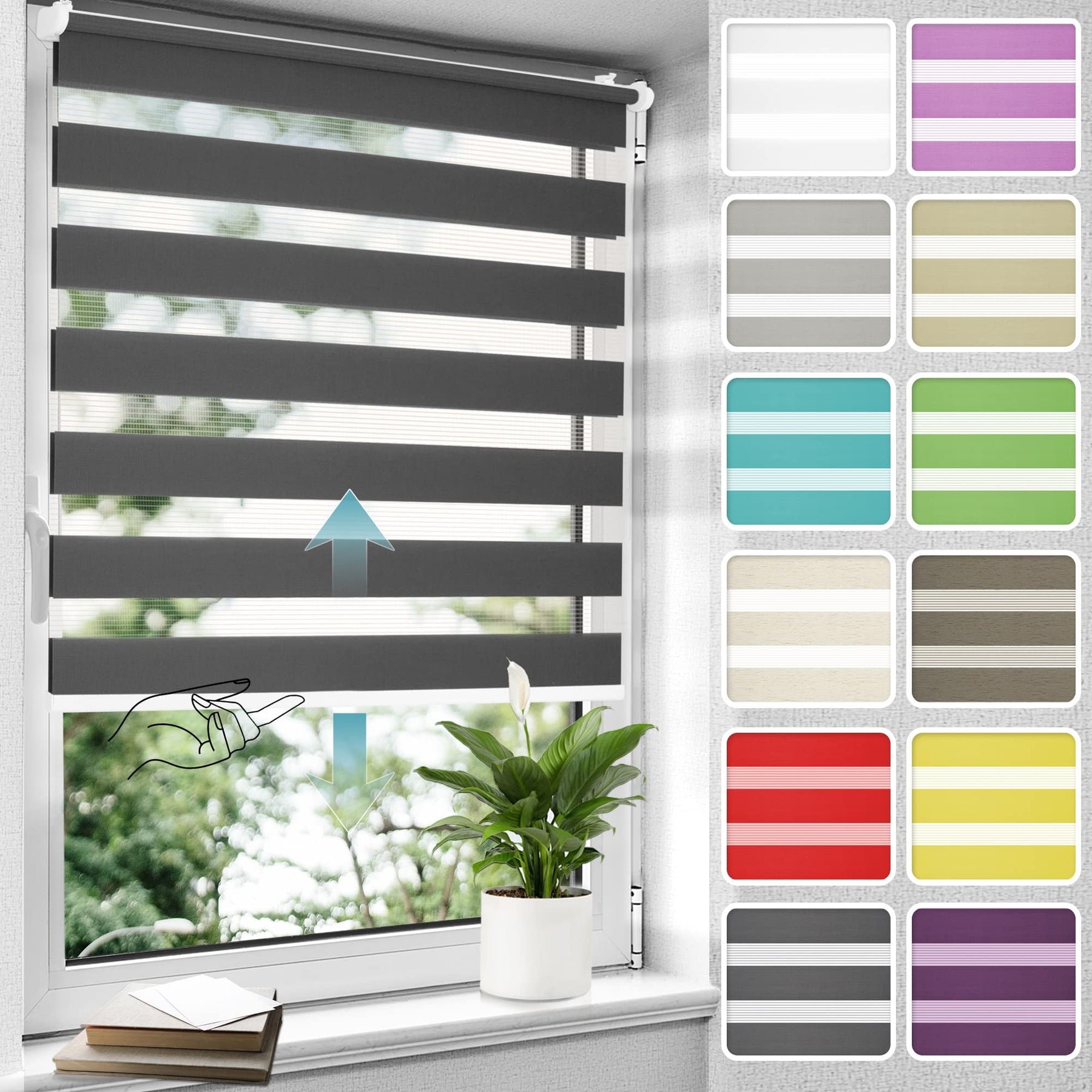 - ăSonnenschutz & PrivatsphĂ€reăDas doppelrollo schnurlos ohne Bohren besteht aus abwechselnd halbtransparenten und abdunkelnden Stoffstreifen. Mit Hilfe der Schiene am Ende des Rollos ist das Mittelzugrollo individuell und stufenlos von können Sie