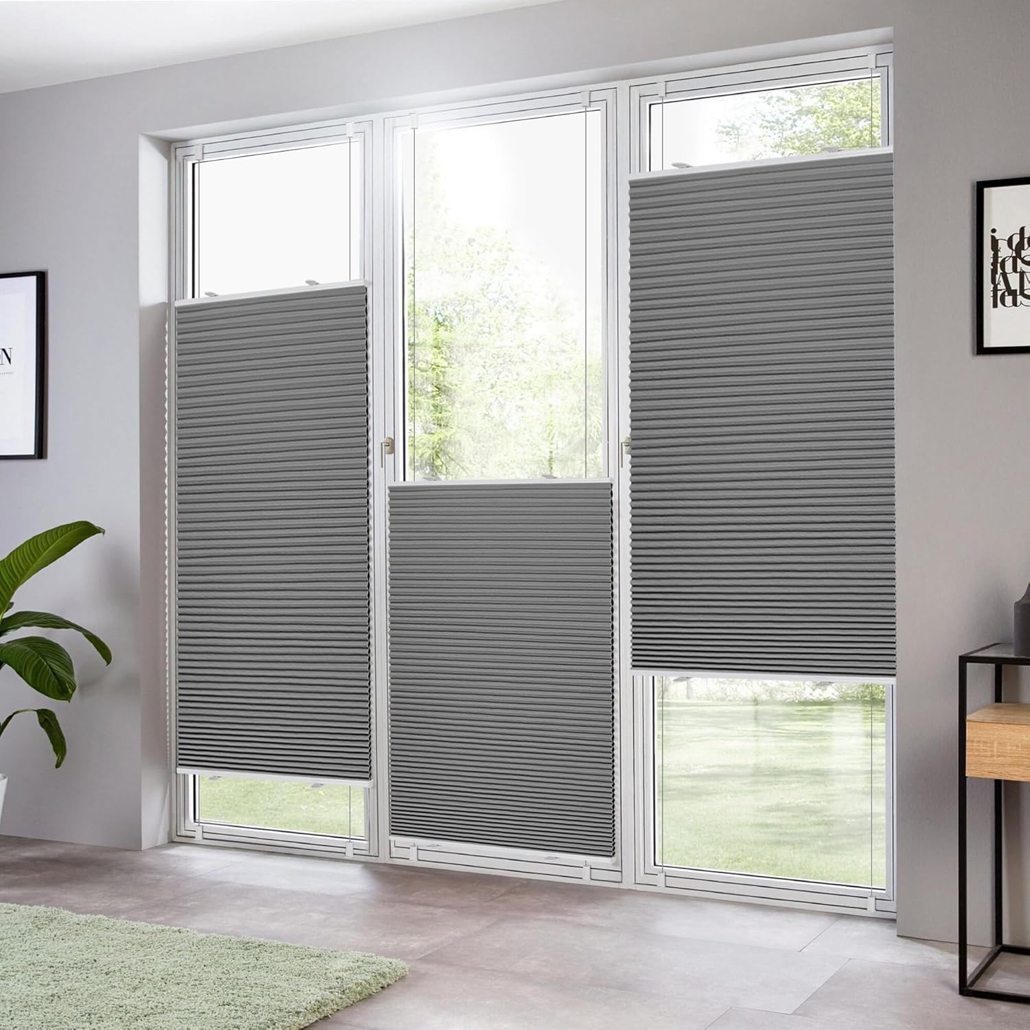 Allesin Wabenplissee ohne Bohren Verdunklung Thermo Doppelplissee Klemmfix Zweifarbig Grau-weiss 50x