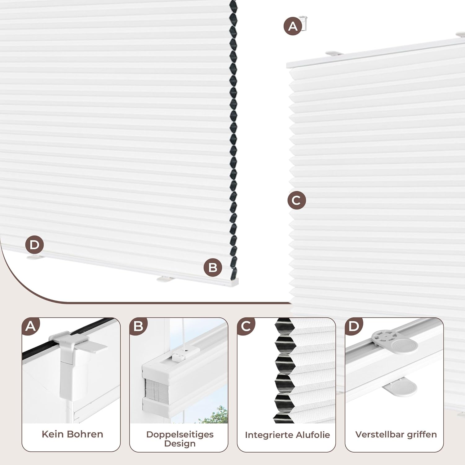 - ๐จใZweifarbigใ: Die Seiten des Plisseerollos Klemmfix haben unterschiedliche Farben, Material: 100% Polyester. Bei der Montage kann ausgewรคhlt werden, welche Seite innen und welche aussen sein soll.