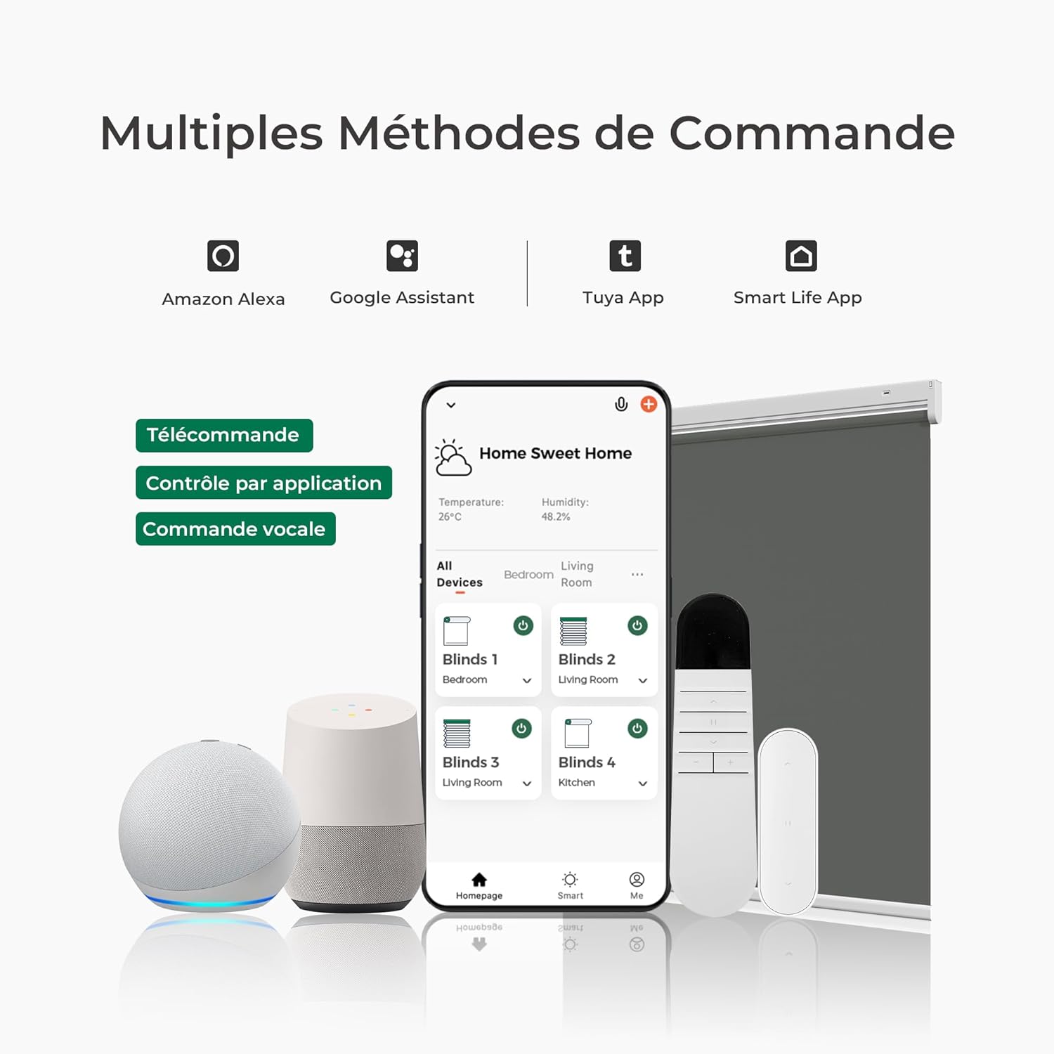 • 【Smart Motor】Wiederaufladbare Leiser Motor Alexa&Google Assistant kompatibel, Per Handy steuerbar. Externe Sonnenkollektoren können installiert werden, Energieeinsparung und Umweltschutz.