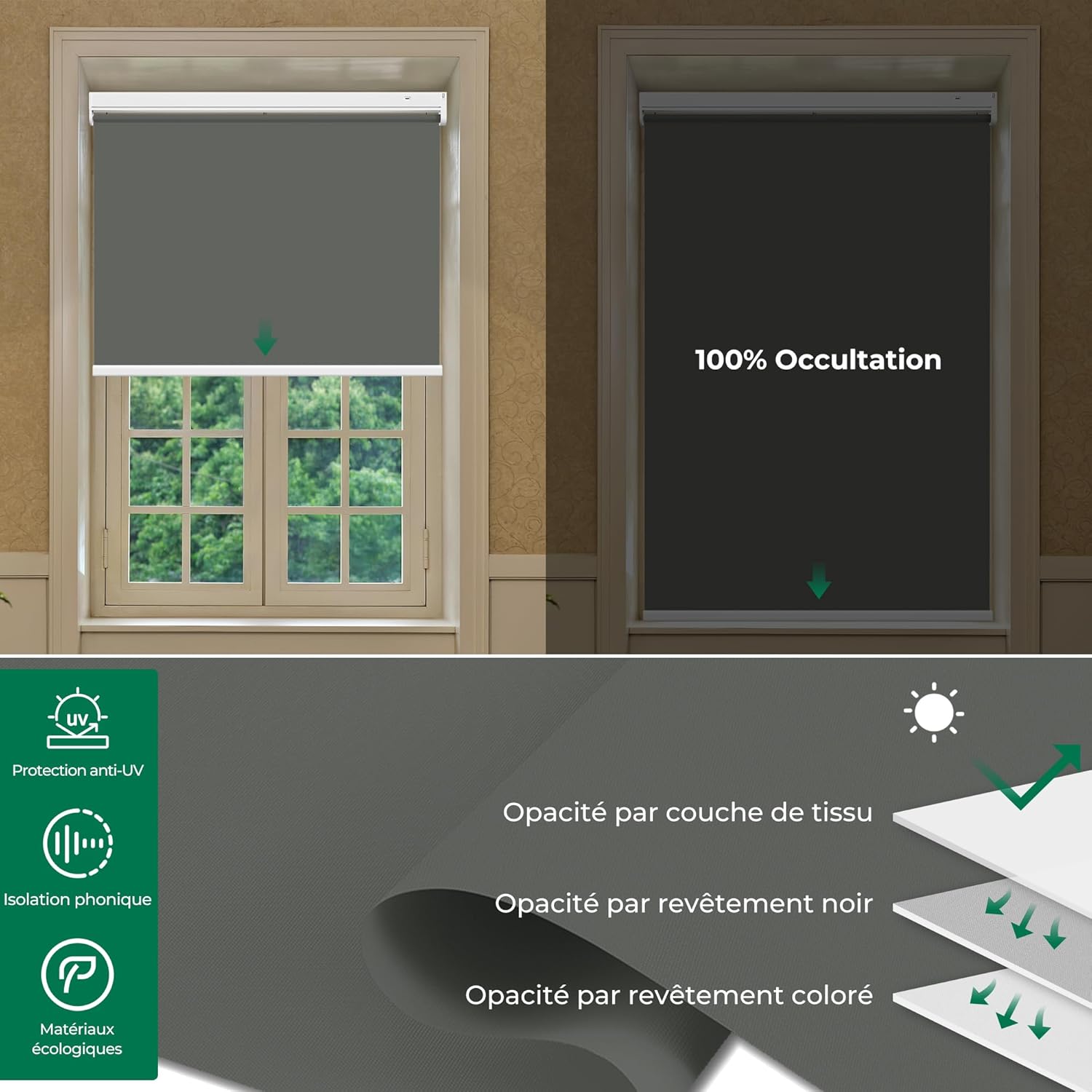 • 【Funktionelles E-Rollo】100% Verdunkelung, Der Stoff besteht aus 100% Polyester mit Beschichtung auf der Rückseite. Elektriche Verdunklungsrollo Privatsphäre Schützen und zusätzliche Energieeinsparung bieten. Das Elektrisches Rollos Innen