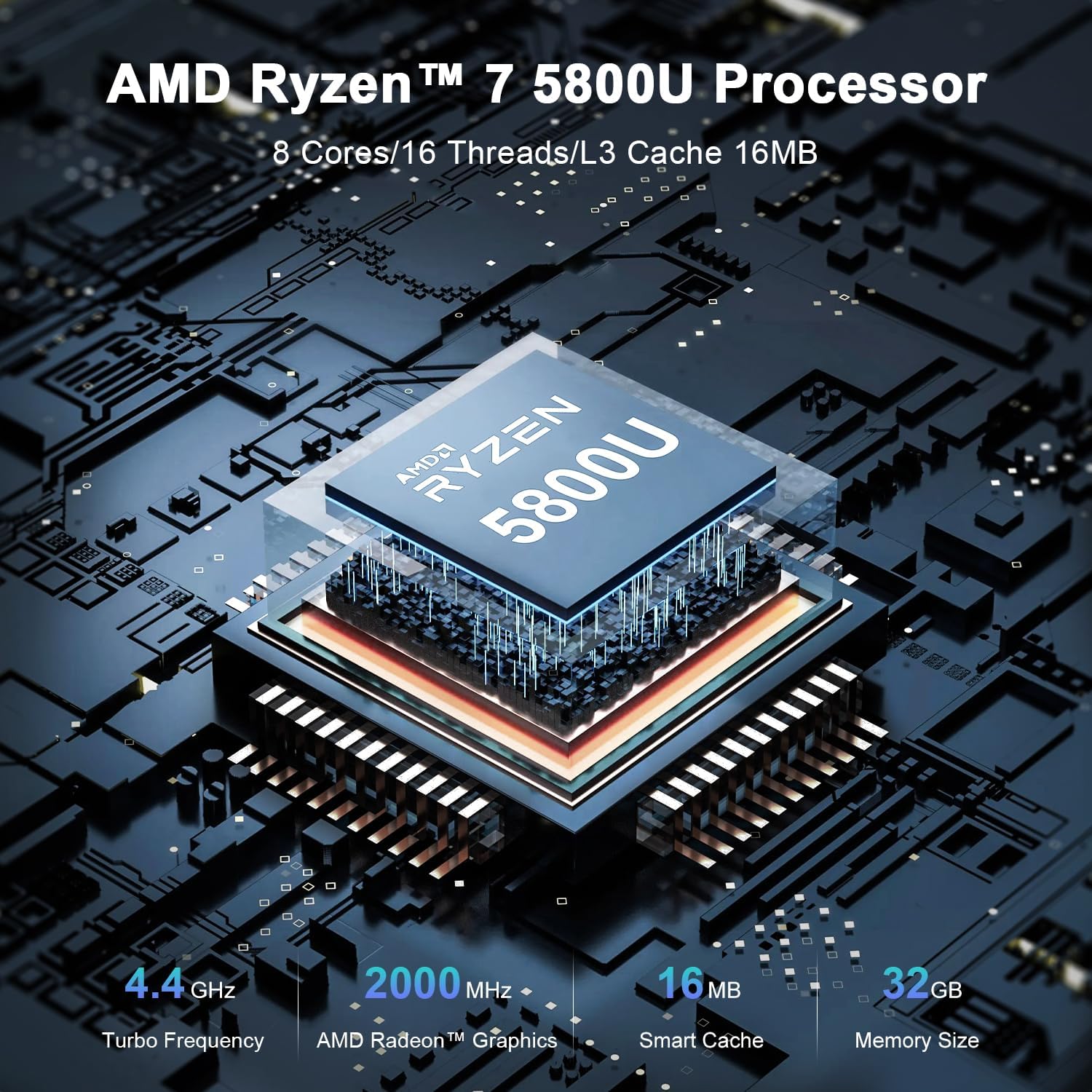 • 【Large Storage & Expandable Capacity】5800U Ryzen 7 mini desktop computer Installed with dual channel DDR4 32GB(2x16GB) RAM, 2 accessible memory slots upgradable to 64 GB. 1TB M.2 PCIe4.0 NVME 2280 SSD, up to 2TB. You can expand the storage via a 7mm