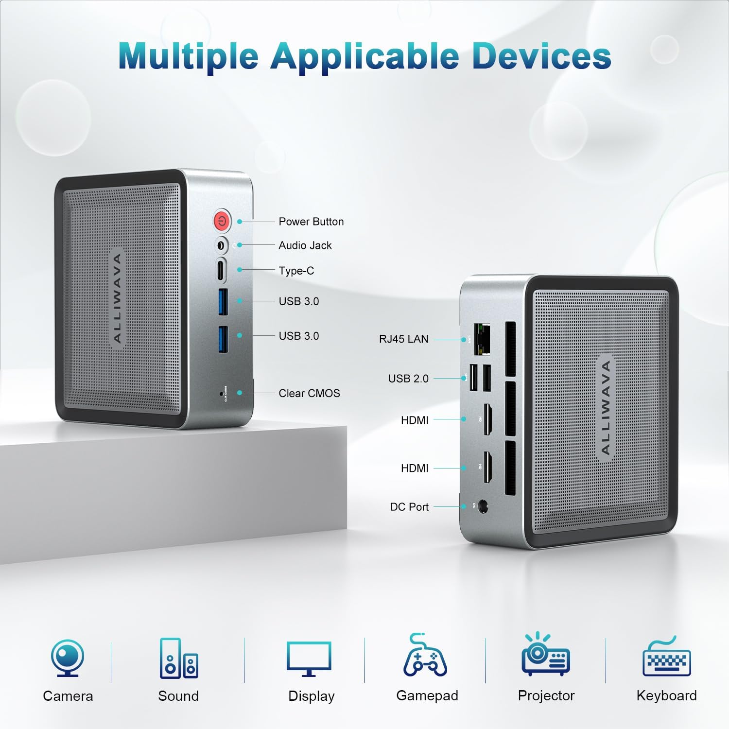 • 【Small PC Has All You Needs】Small form factor pc equipped with 1x USB-C, 2 x HDMI, 2x USB 3.0, 2x USB 2.0, 1 xGigabit Ethernet, 3.5mm Audio Jack. Wi-Fi6E (802.11ax), Bluetooth 5.2. Sufficient interfaces for your full range of connectivity